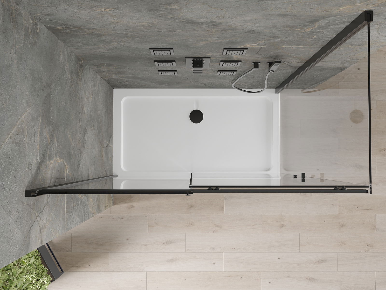 Mexen Omega cabină de duș culisantă 140 x 80 cm, transparentă, neagră + cadă Flat, albă - 825-140-080-70-00-4010B