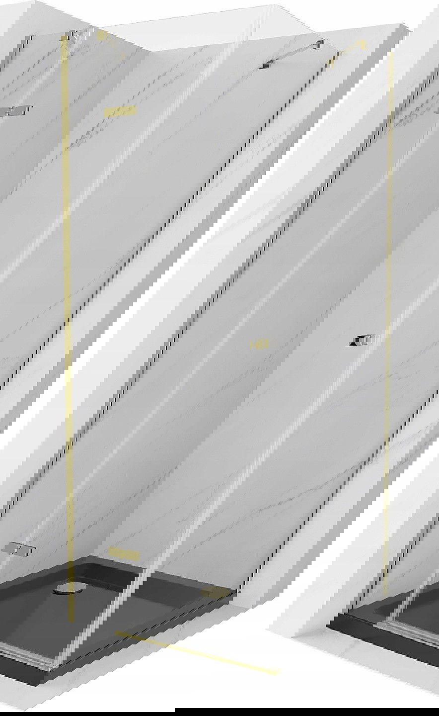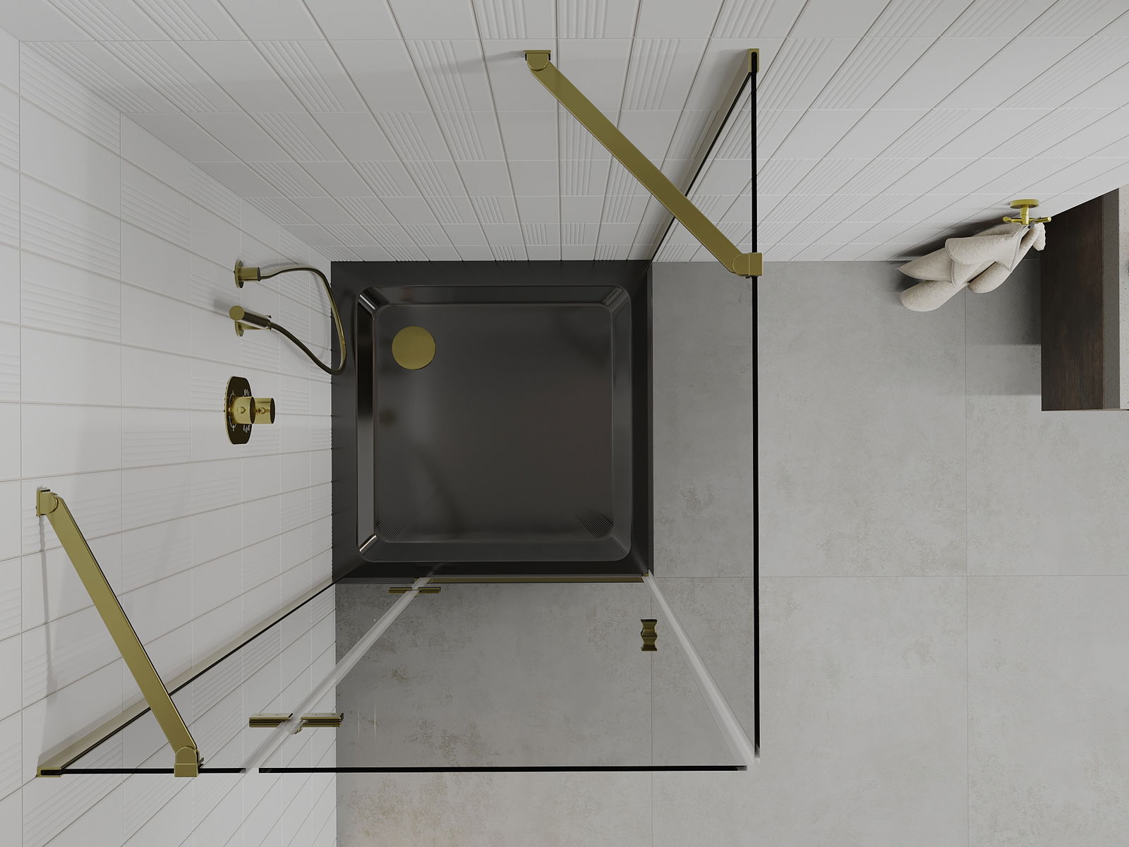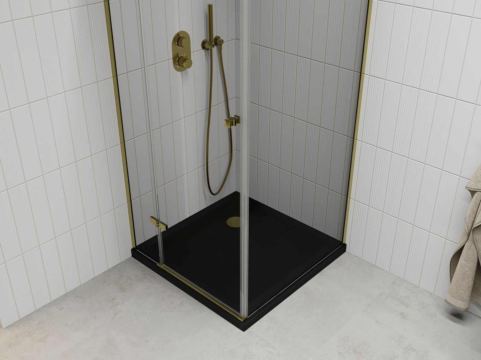 Mexen Roma cabină de duș pivotantă 90 x 90 cm, transparentă, aurie + cadă Flat, neagră - 854-090-090-50-00-4070G