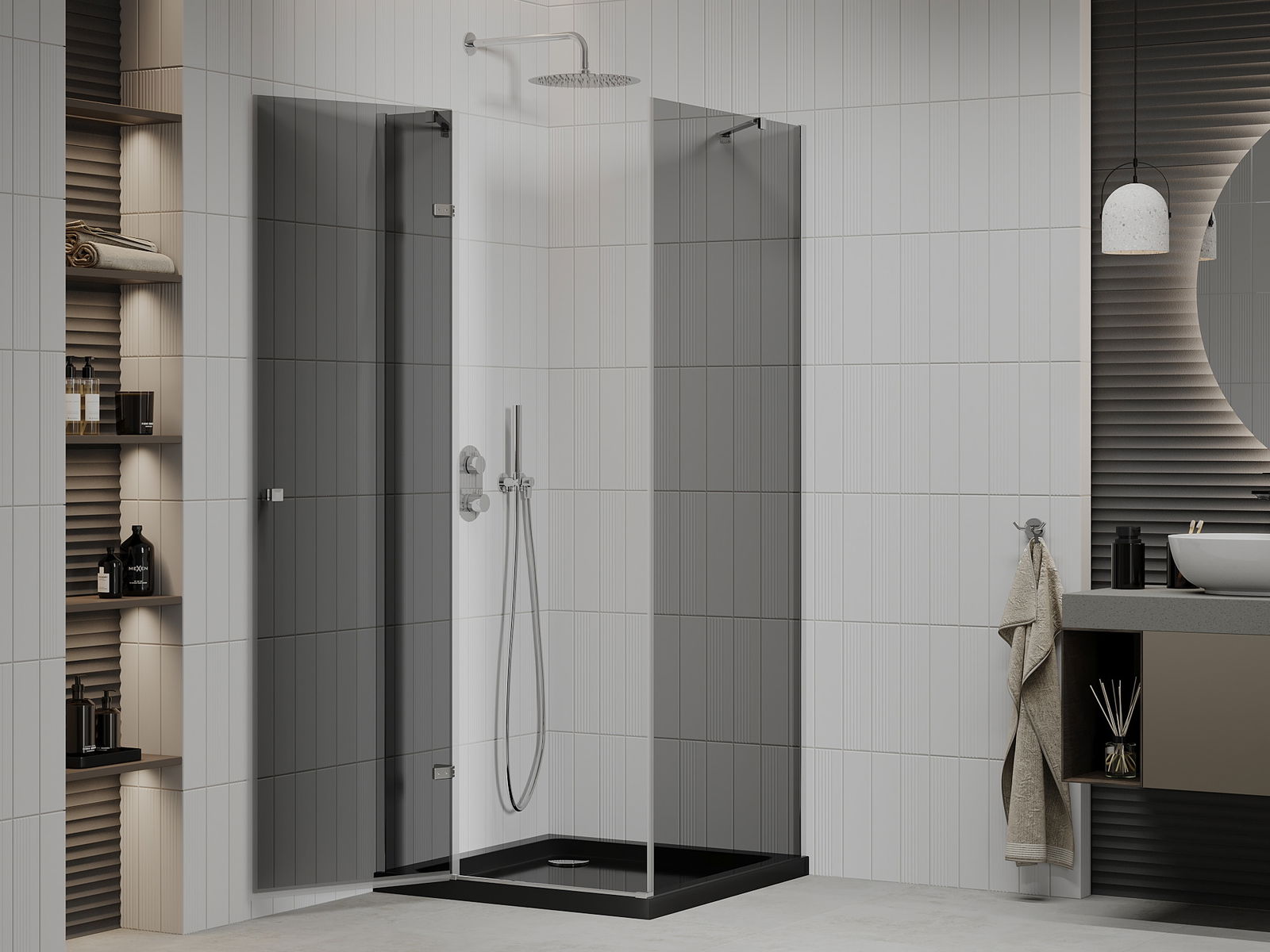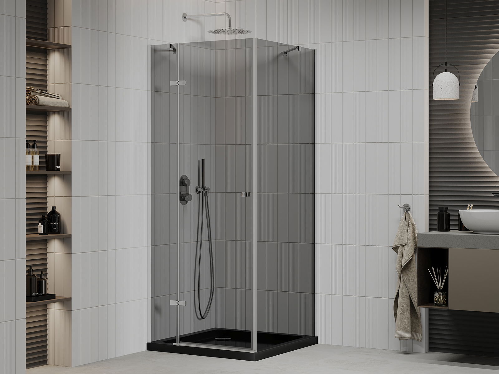 Mexen Roma cabină de duș batantă 80 x 80 cm, grafit, crom + cadă de duș Flat, negru - 854-080-080-01-40-4070