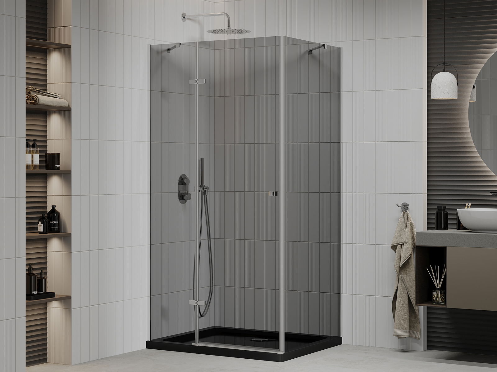 Mexen Roma cabină de duș batantă 100 x 90 cm, grafit, crom + cadă Flat, negru - 854-100-090-01-40-4070