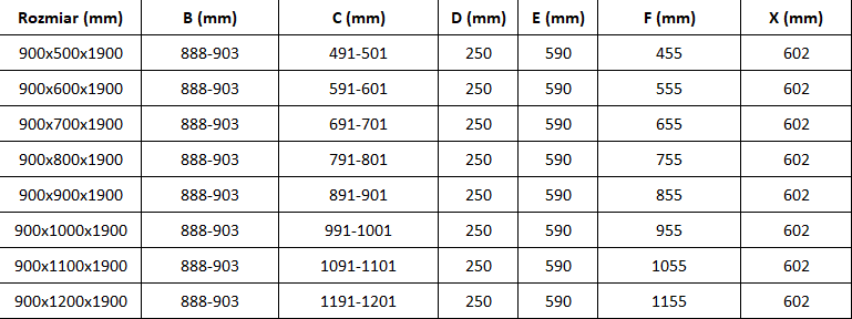 Dimensiune: 90x100 cm (uși 90 cm, perete 100 cm)