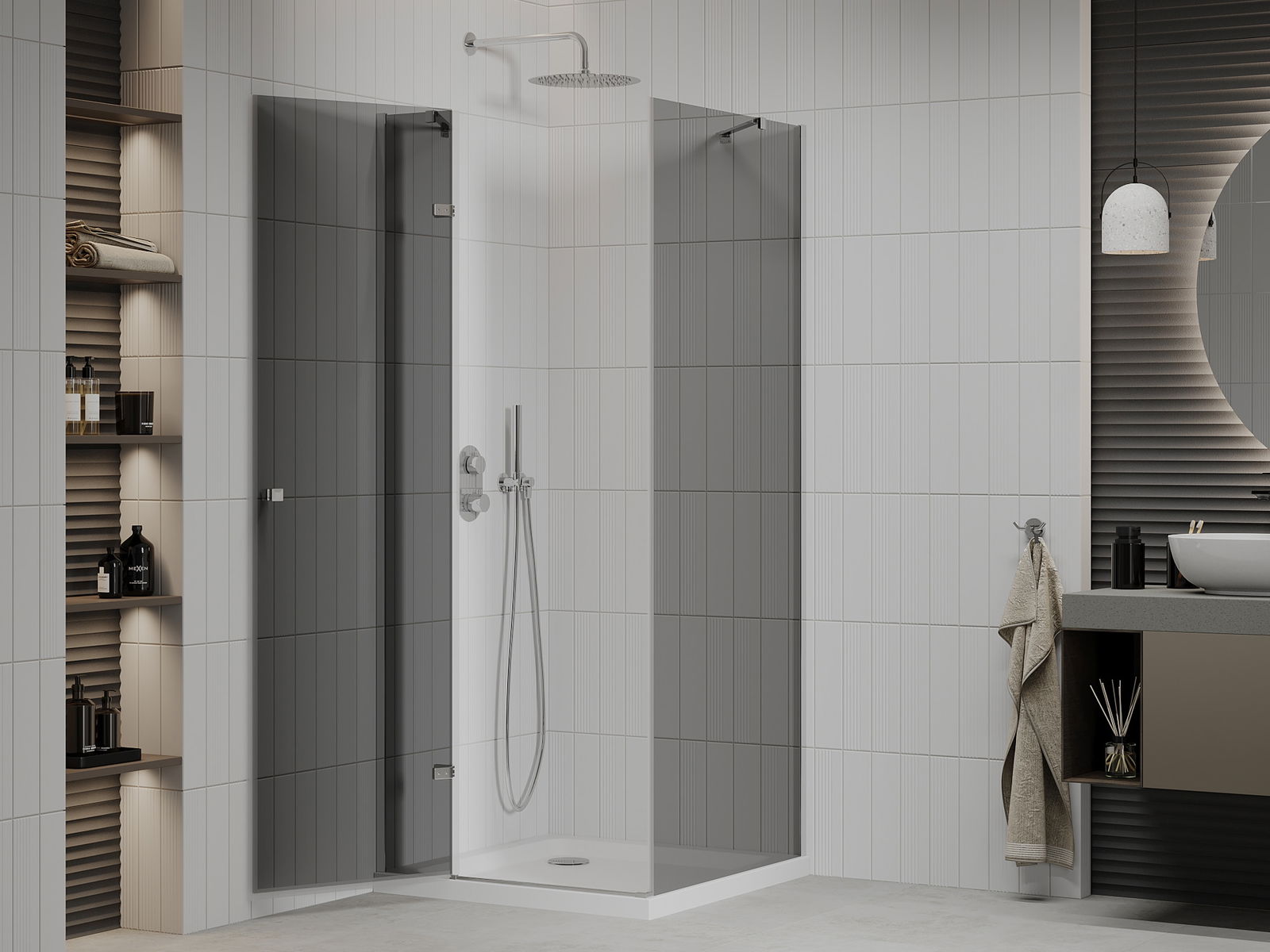 Mexen Roma cabină de duș pivotantă 80 x 80 cm, grafit, crom + cadă de duș Flat, alb - 854-080-080-01-40-4010