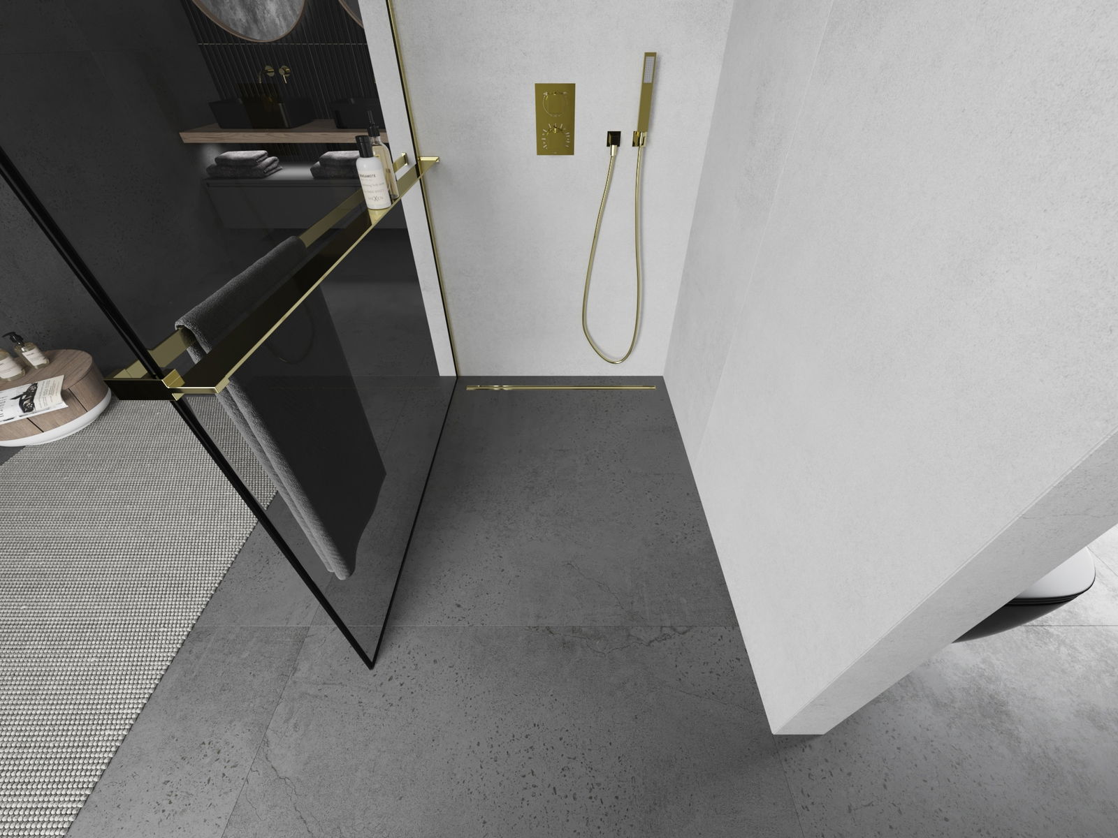 Mexen Kioto+ panou de duș cu raft Walk-in 70 x 200 cm, cadru negru, auriu - 800-070-121-50-70