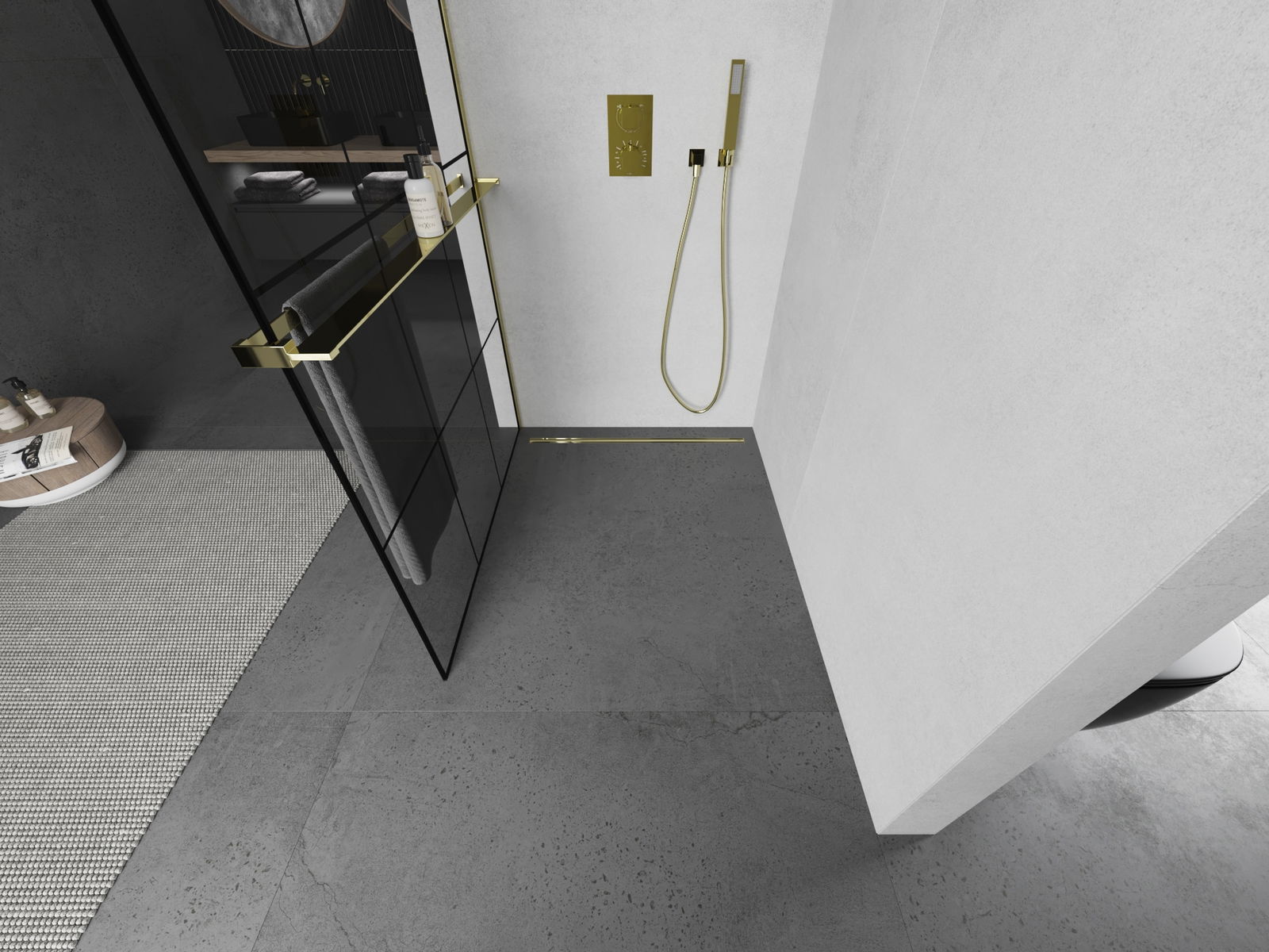 Mexen Kioto+ perete de duș cu raft Walk-in 120 x 200 cm, grilaj negru, auriu - 800-120-121-50-77