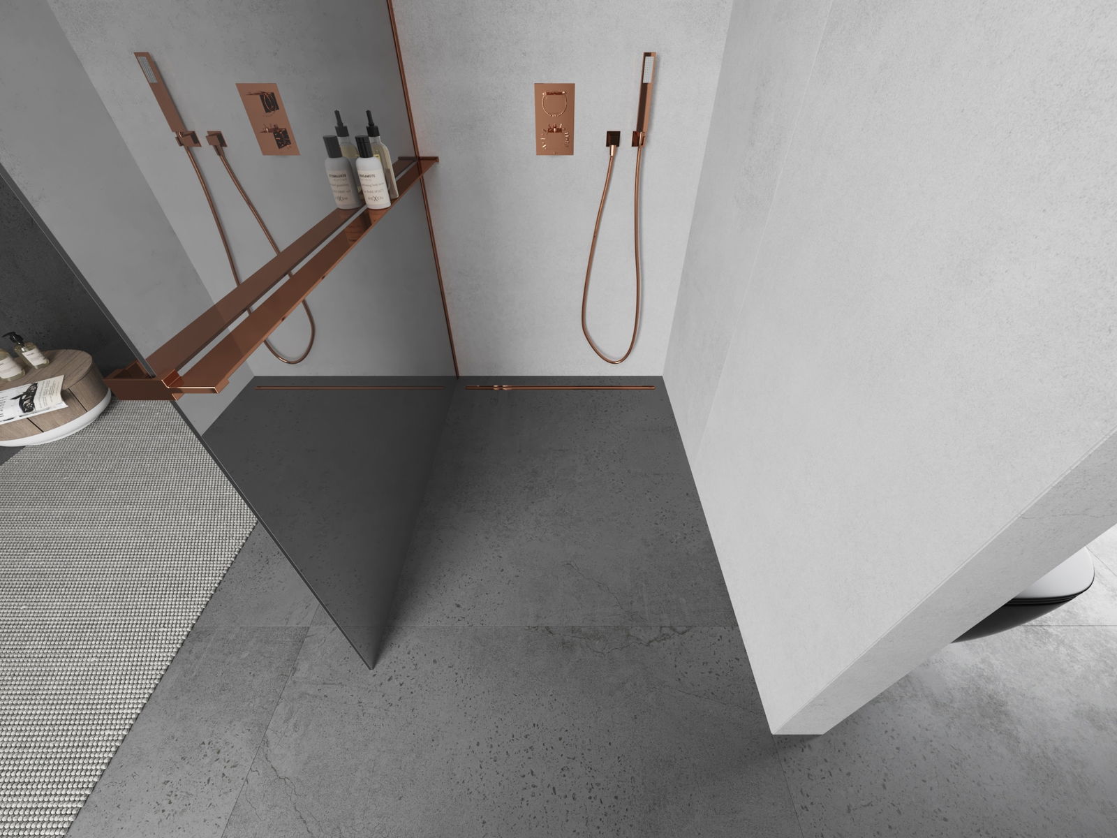Mexen Kioto+ perete de duș cu raft Walk-in 90 x 200 cm, oglindă, aur roz - 800-090-121-60-50