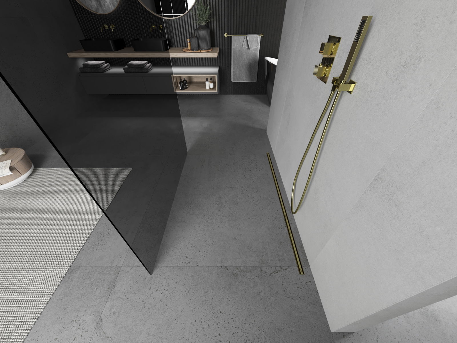 Mexen Kioto panou de duș independent 120 x 200 cm, grafit 8 mm, aur - 800-120-002-50-40