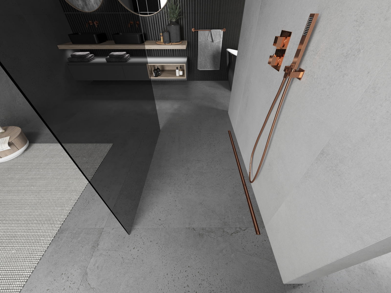 Mexen Kioto perete de duș liber 110 x 200 cm, grafit 8 mm, aur roz - 800-110-002-60-40
