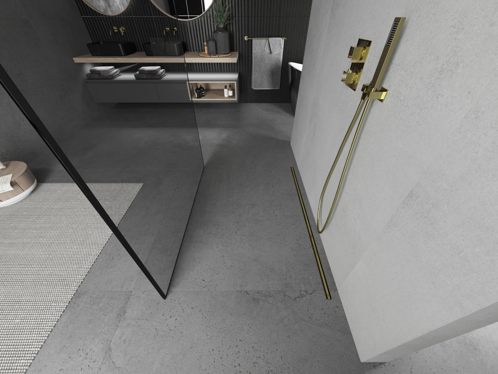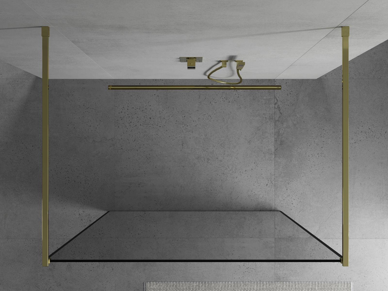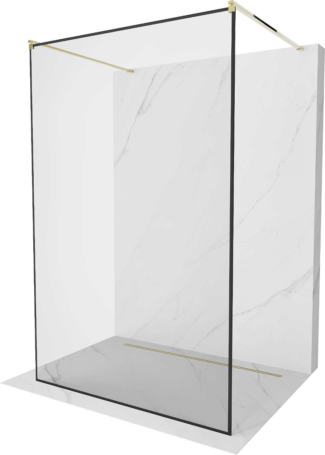 Mexen Kioto perete de duș de sine stătător 110 x 200 cm, ramă neagră 8 mm, auriu - 800-110-002-50-70