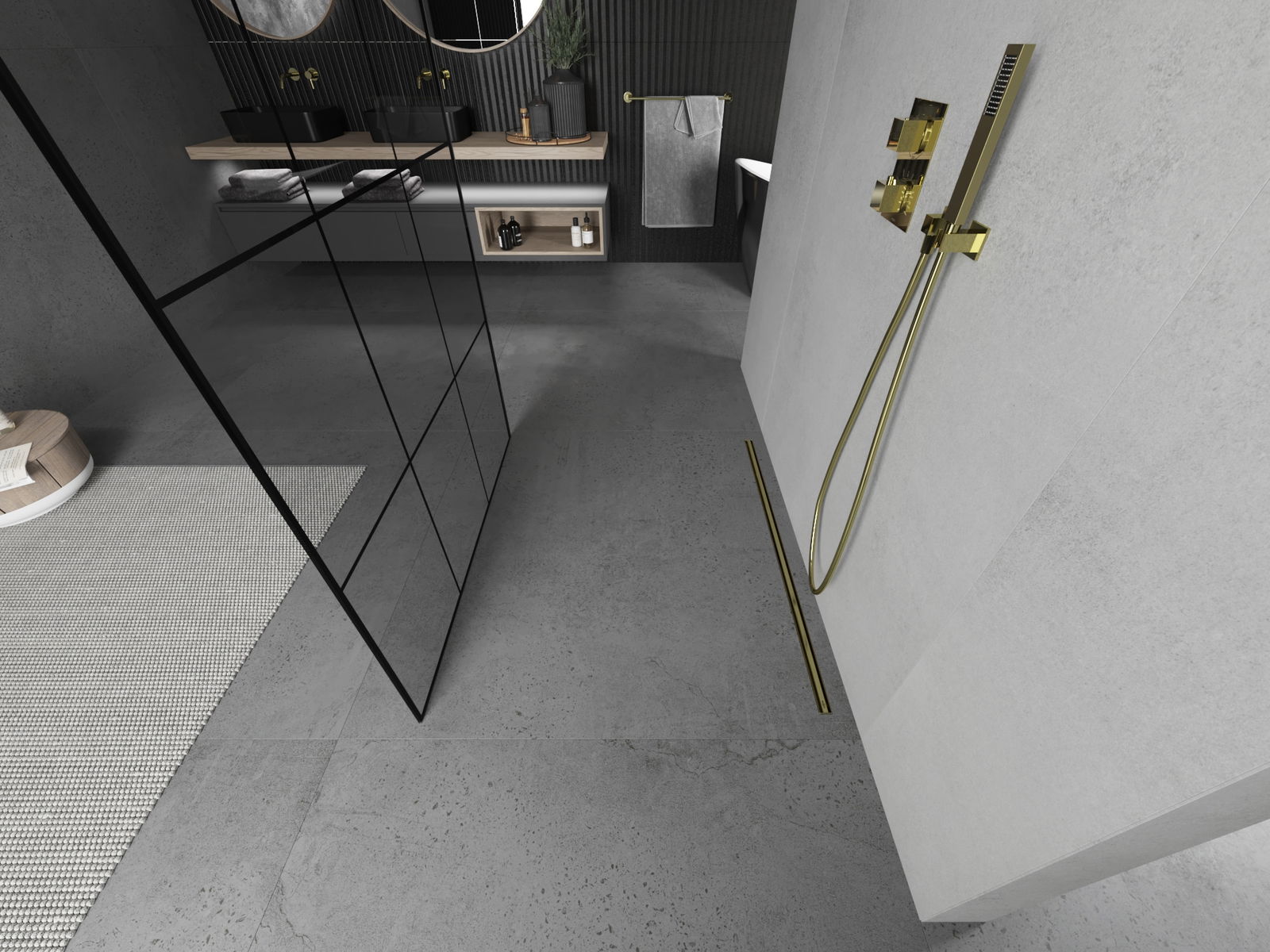 Mexen Kioto perete de duș liber 120 x 200 cm, carouri negre 8 mm, auriu - 800-120-002-50-77