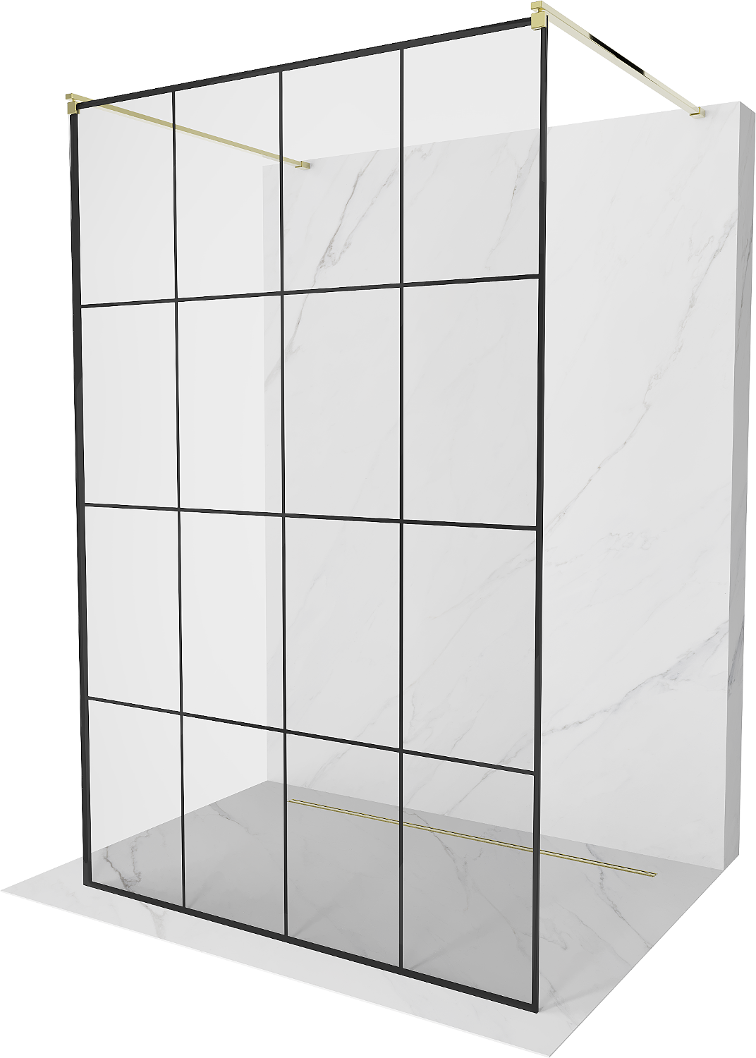 Mexen Kioto perete de duș independent 130 x 200 cm, grilaj negru 8 mm, auriu - 800-130-002-50-77