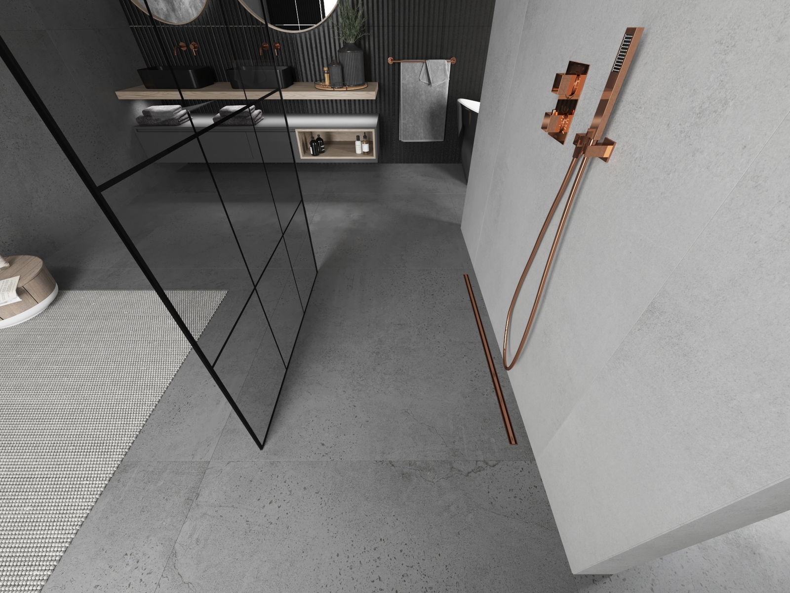 Mexen Kioto panou de duș independent 110 x 200 cm, grilaj negru 8 mm, aur roz - 800-110-002-60-77