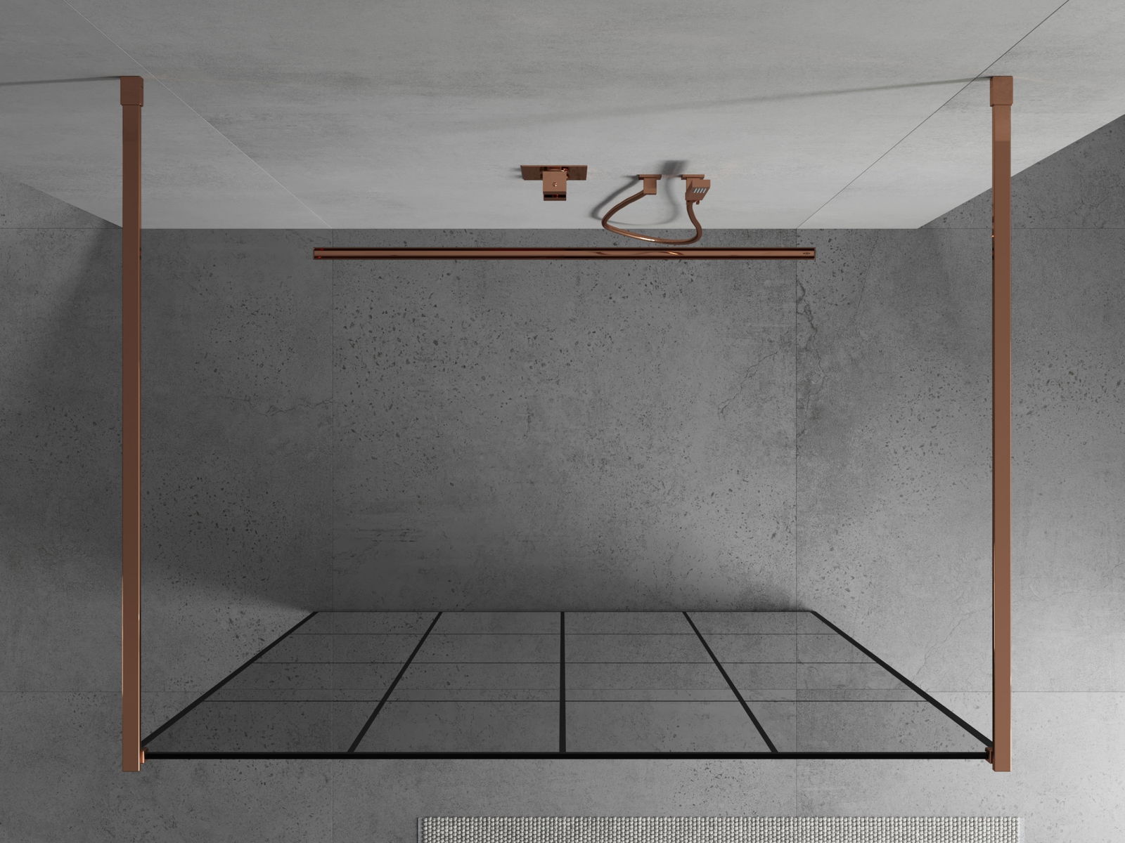 Mexen Kioto perete de duș independent 140 x 200 cm, cu grilaj negru 8 mm, aur roz - 800-140-002-60-77