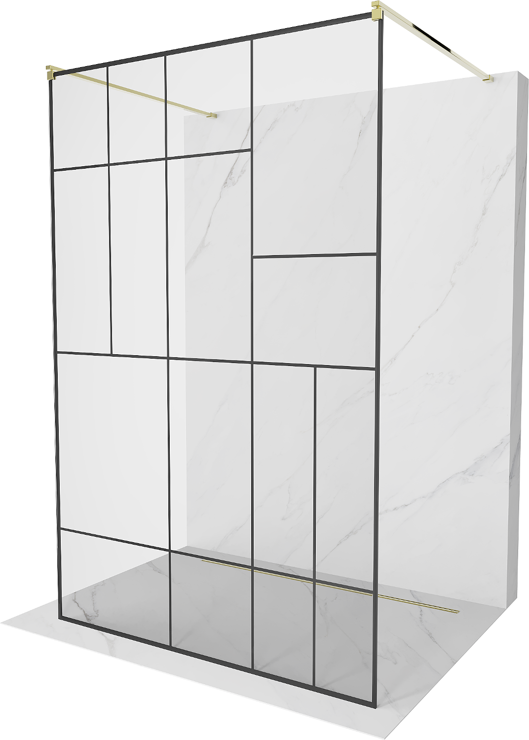 Mexen Kioto perete de duș autoportant 110 x 200 cm, model negru 8 mm, auriu - 800-110-002-50-78