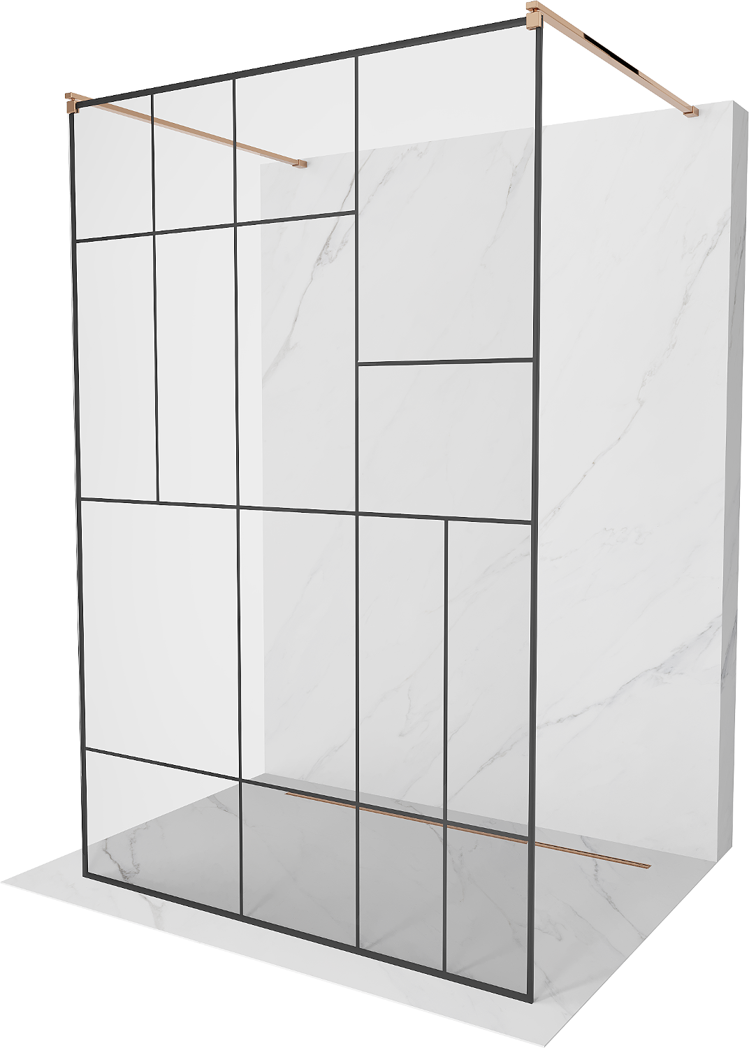 Mexen Kioto perete de duș independent 120 x 200 cm, model negru 8 mm, aur roz - 800-120-002-60-78