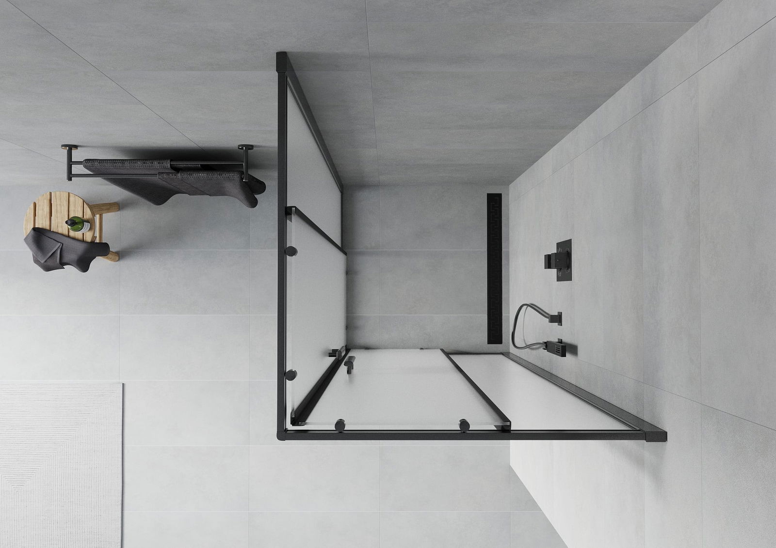 Produsul poate fi montat fie pe cabina de duș, fie direct pe podea, în funcție de nevoi. Metoda de montare universală permite adaptarea produsului la diferite tipuri de băi și configurații de spațiu.