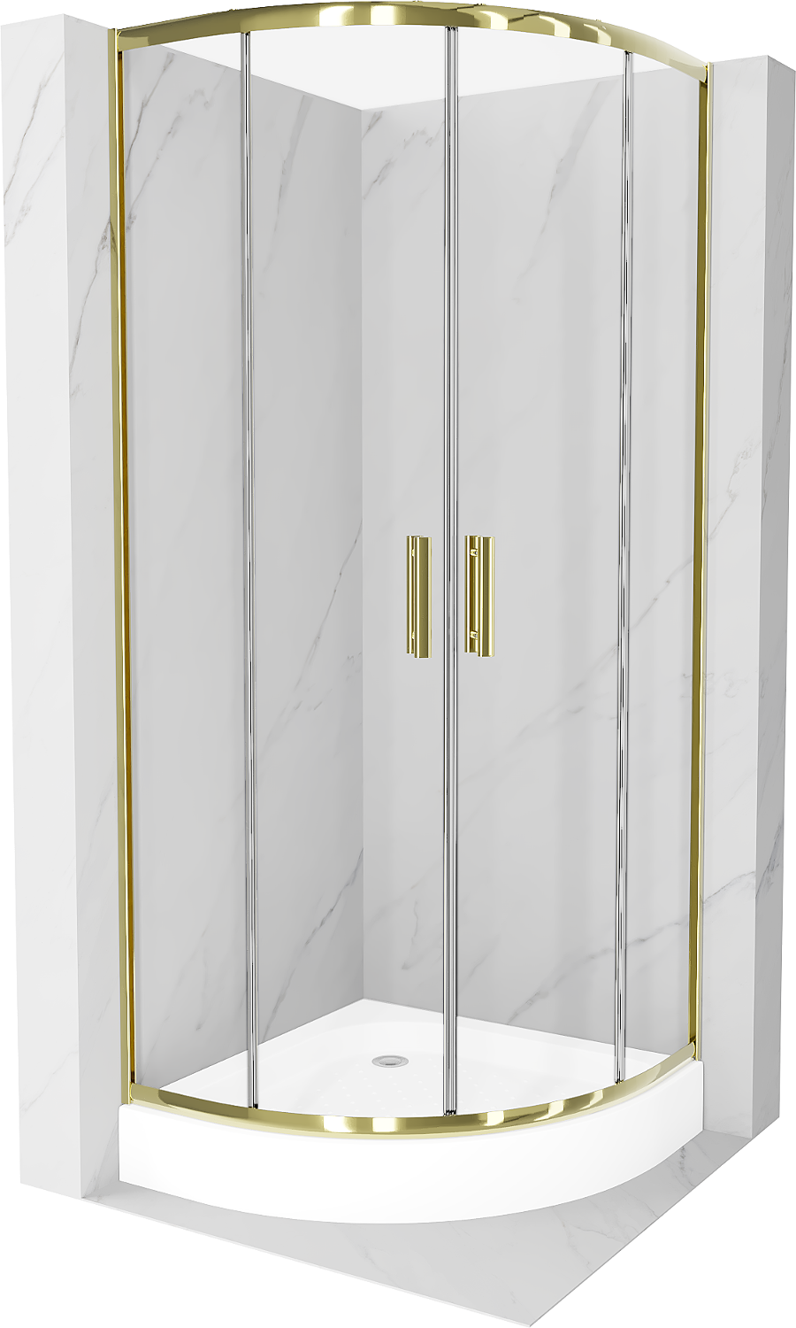 Mexen Rio cabină de duș semicirculară 80 x 80 cm, transparentă, aurie + cadă de duș Rio, albă - 863-080-080-50-00-4710