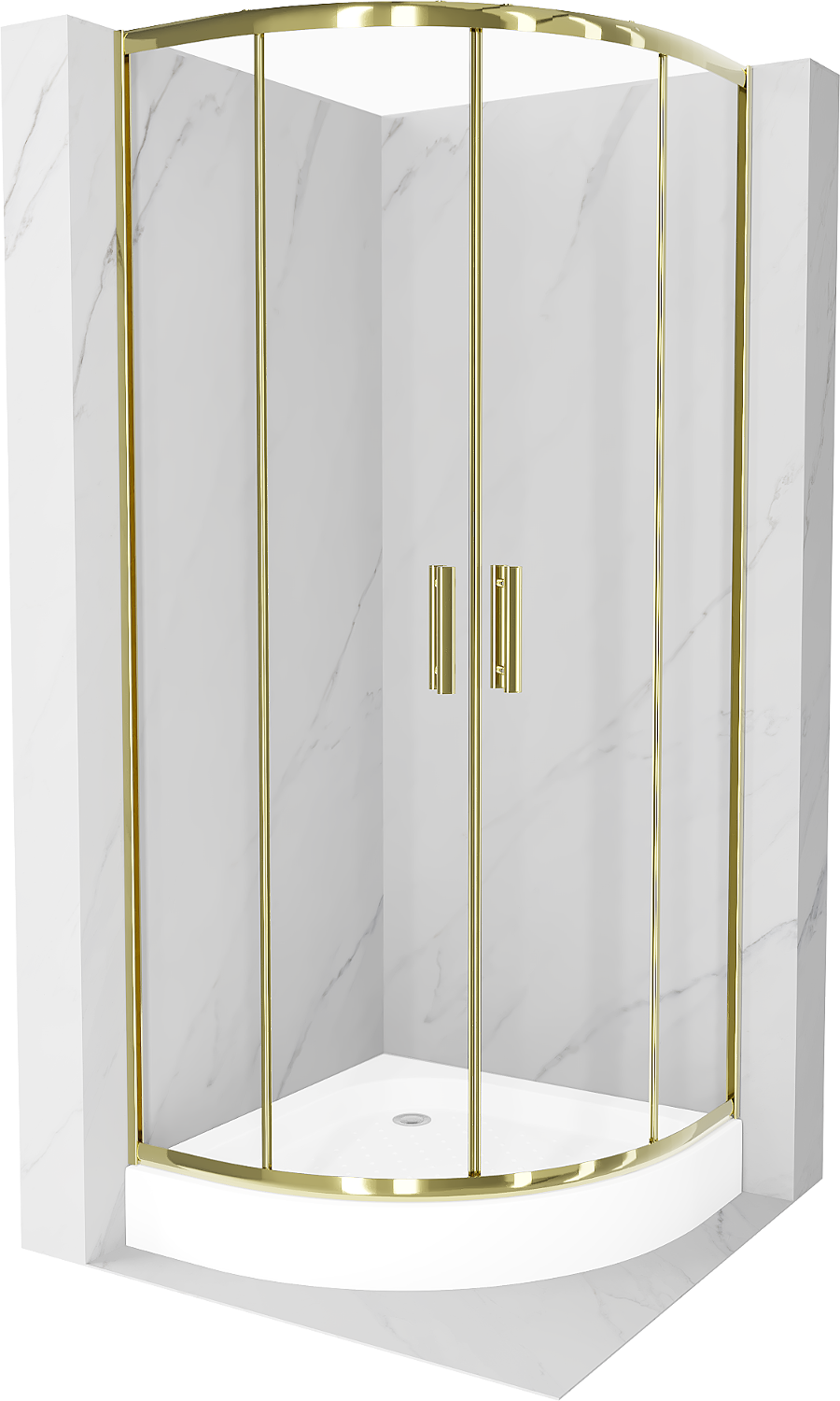 Mexen Rio cabină de duș semicirculară 90 x 90 cm, transparentă, aurie + cadă de duș Rio, albă - 863-090-090-50-00-4710