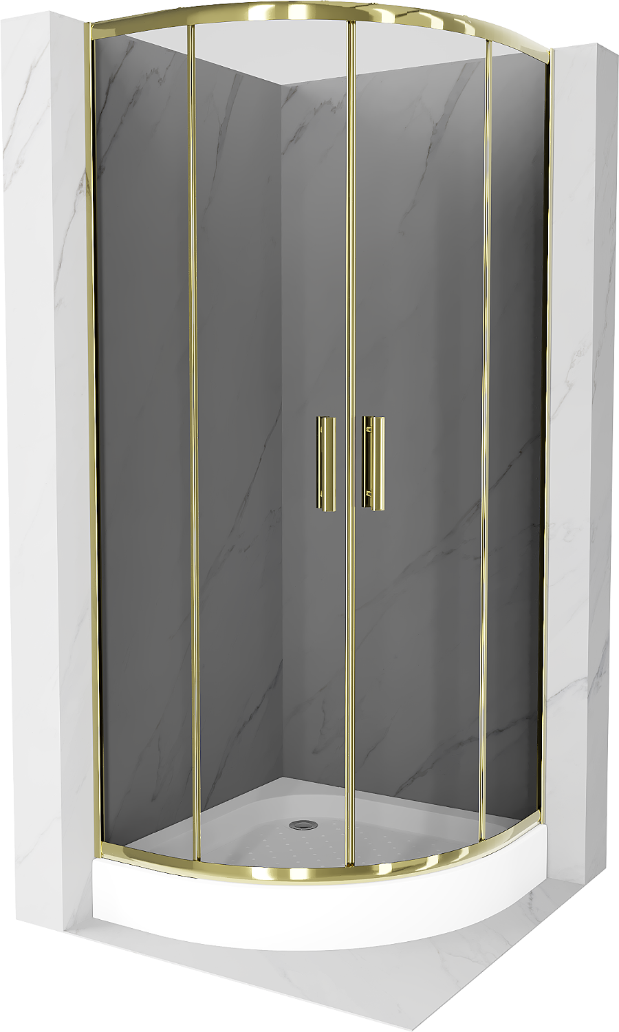Cabină de duș semicirculară Mexen Rio 70 x 70 cm, grafit, auriu + cadă Rio, alb - 863-070-070-50-0-4710