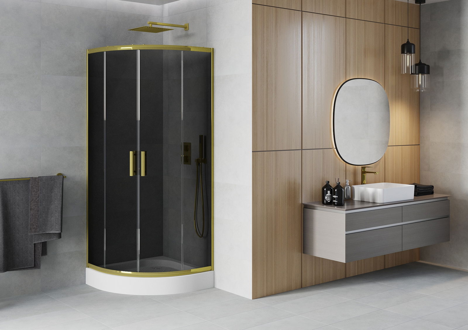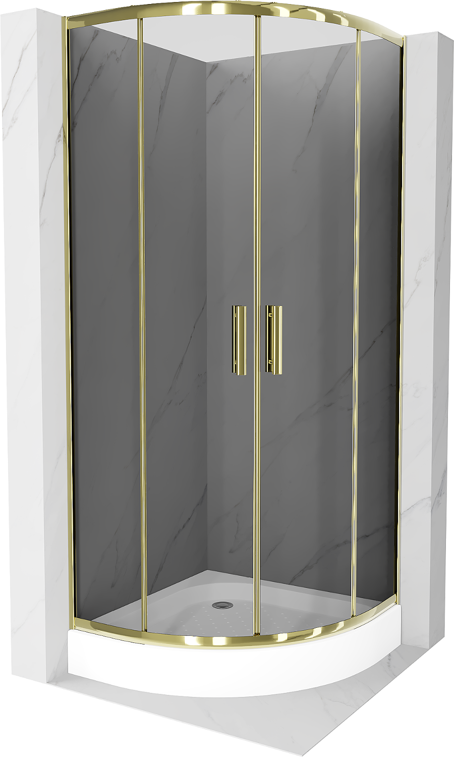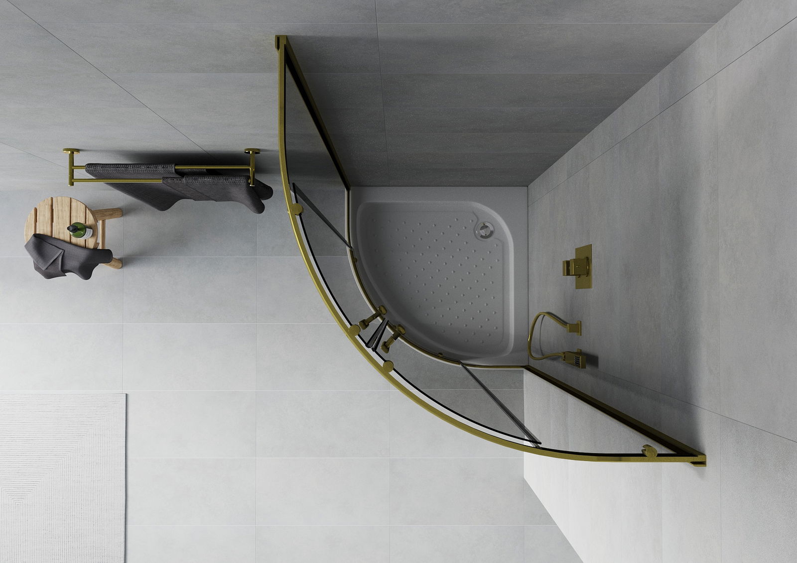 Mexen Rio cabina de duș semirotundă 70 x 70 cm, grafit, auriu + cadă de duș, alb - 863-070-070-50-0-4710