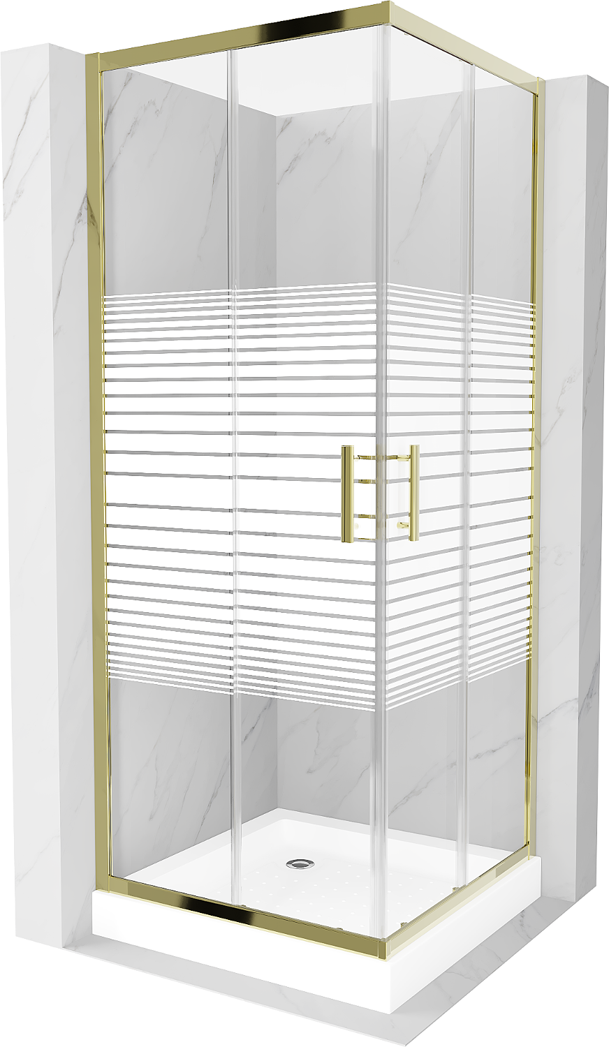 Mexen Rio cabină de duș pătrată 80 x 80 cm, dungi albe, auriu + cadă de duș Rio, alb - 860-080-080-50-20-4510