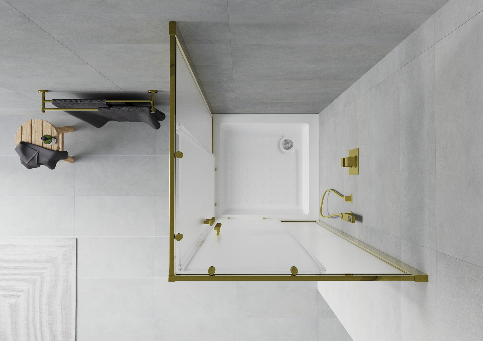 Mexen Rio cabină de duș pătrată 70 x 70 cm, înghețat, auriu + cadă de duș Rio, alb - 860-070-070-50-30-4510