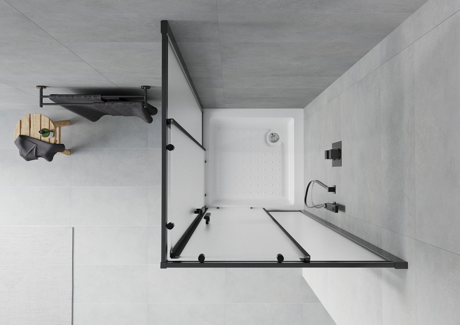 Mexen Rio cabină de duș pătrată 80 x 80 cm, înghețat, negru + cadă de duș Rio, alb - 860-080-080-70-30-4510
