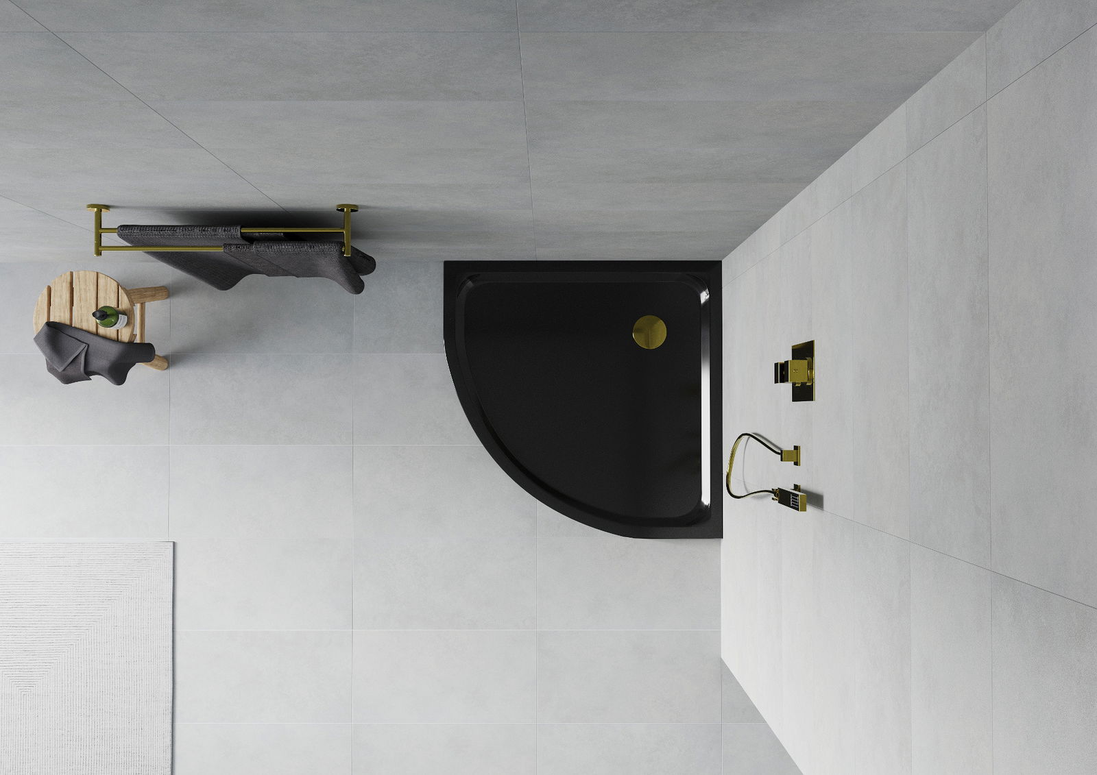 Mexen Flat cadă de duș semicirculară slim 100 x 100 cm, negru, sifon auriu - 41701010G