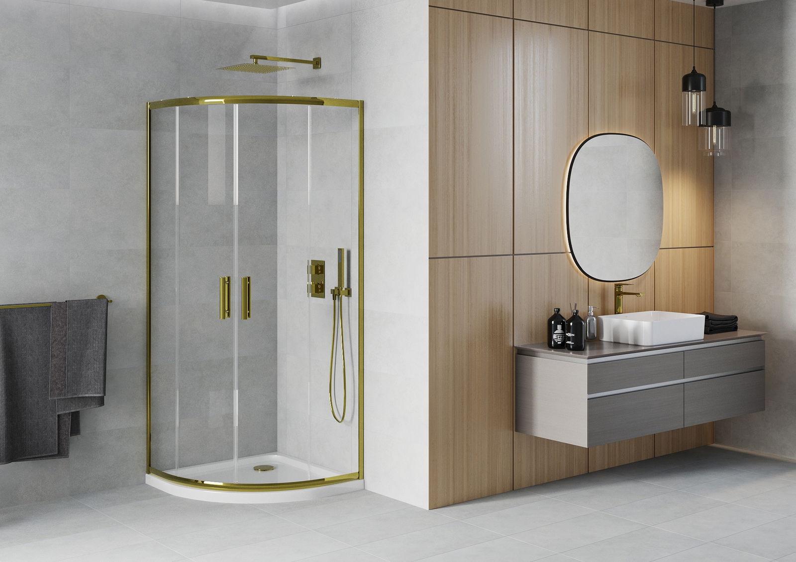 Mânerul la îndemână și confortabil era din metal durabil și rezistent. Forma la modă combinată cu un finisaj adaptat culorii profilurilor oferă întregului aspect modern și elegant, subliniind estetica fiecărei băi.