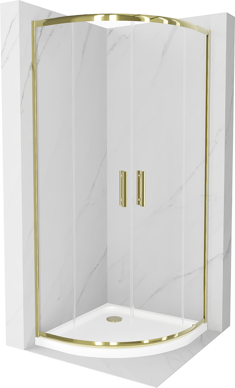 Mexen Rio cabină de duș semi-circulară 80 x 80 cm, transparentă, aurie + cadă Flat, alb - 863-080-080-50-00-4110G