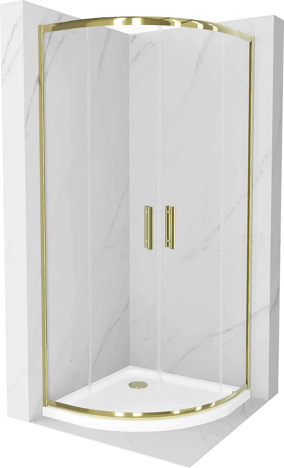 Mexen Rio cabină de duș semi-rotundă 90 x 90 cm, transparent, auriu + cadă Flat, alb - 863-090-090-50-00-4110G