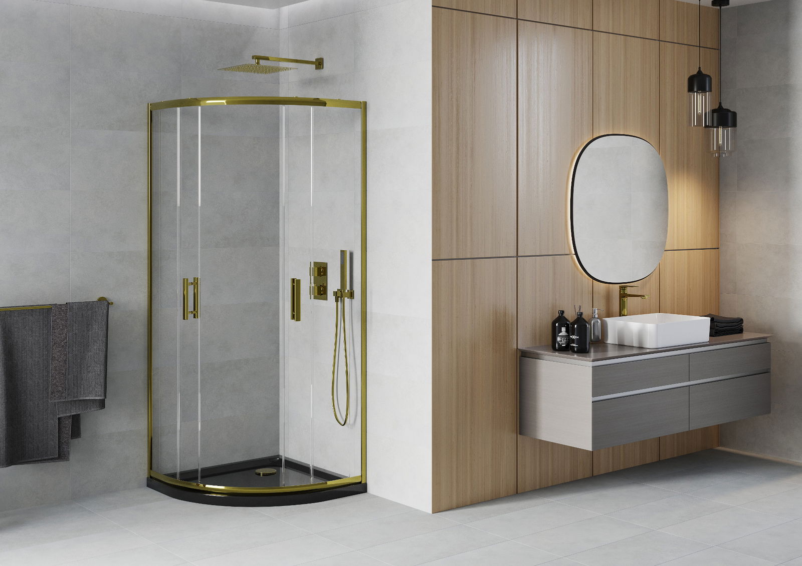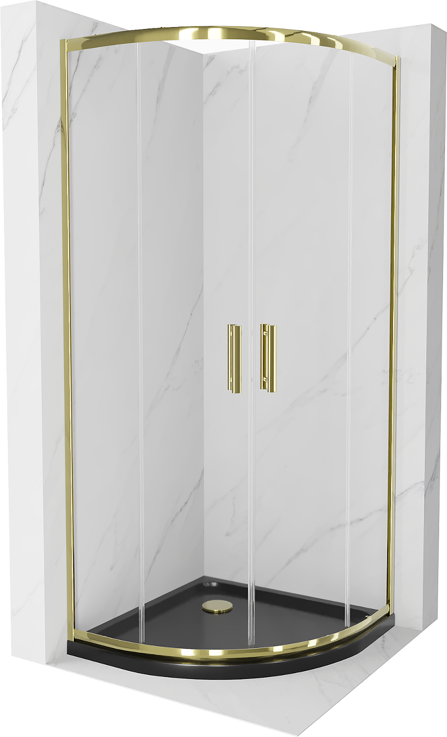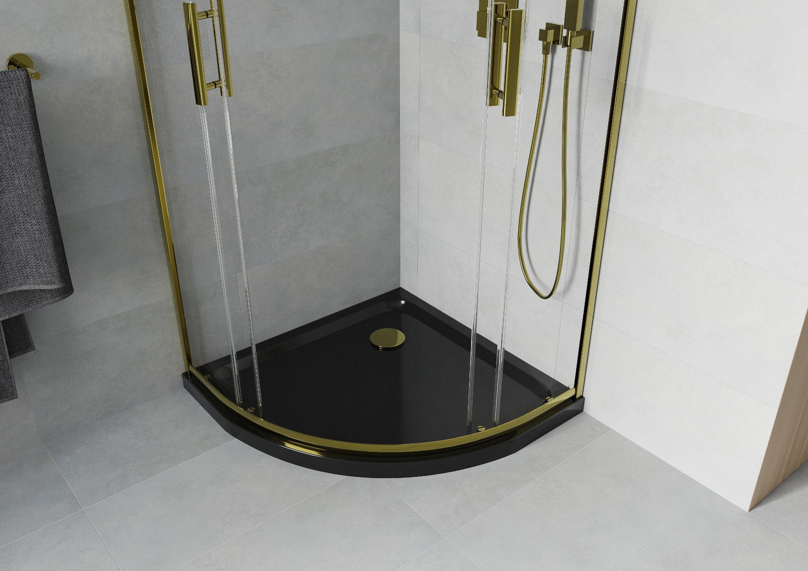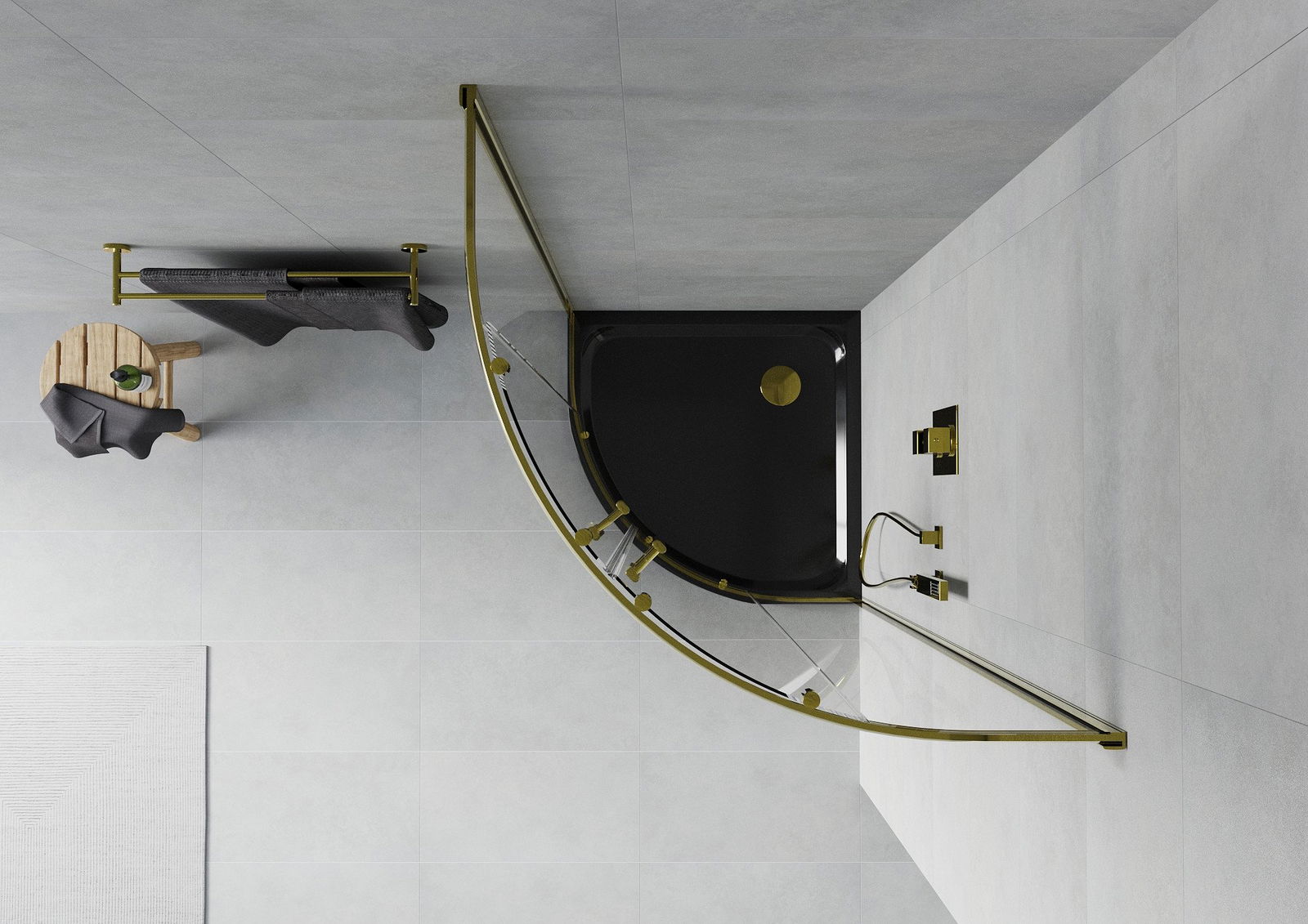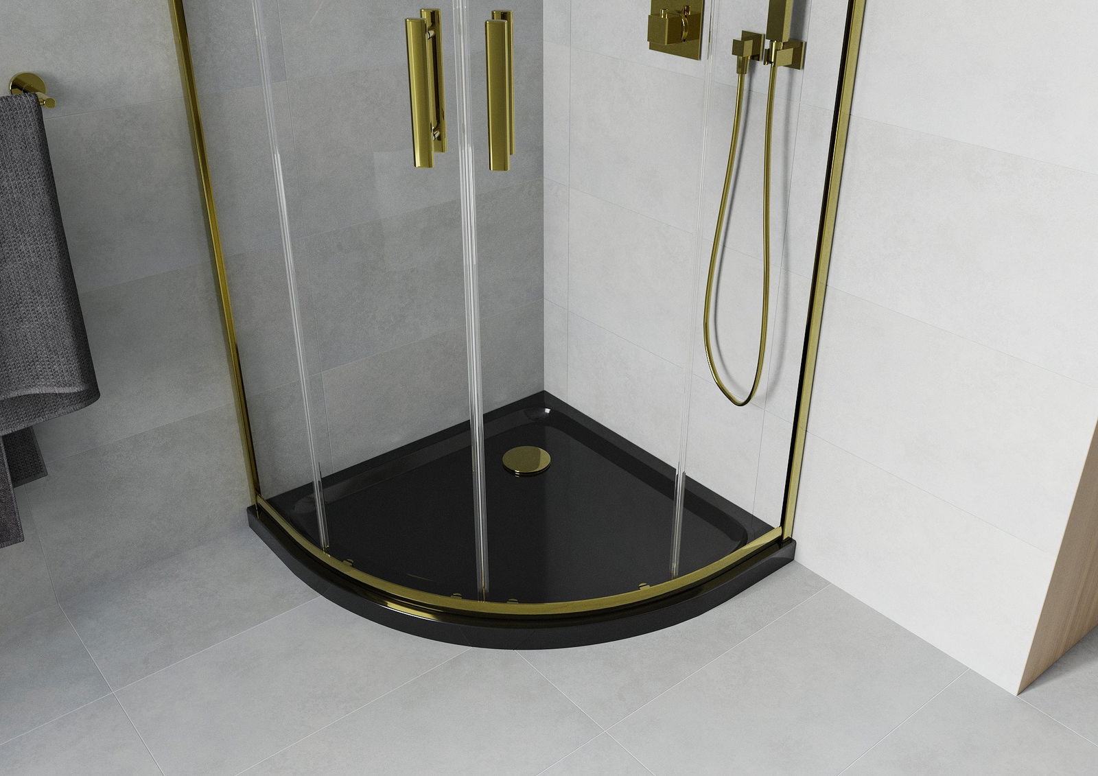 Cabina de duș semirotundă Mexen Rio 90 x 90 cm, transparentă, aurie + cadă Flat, neagră - 863-090-090-50-00-4170G