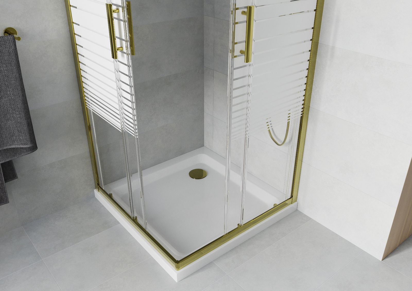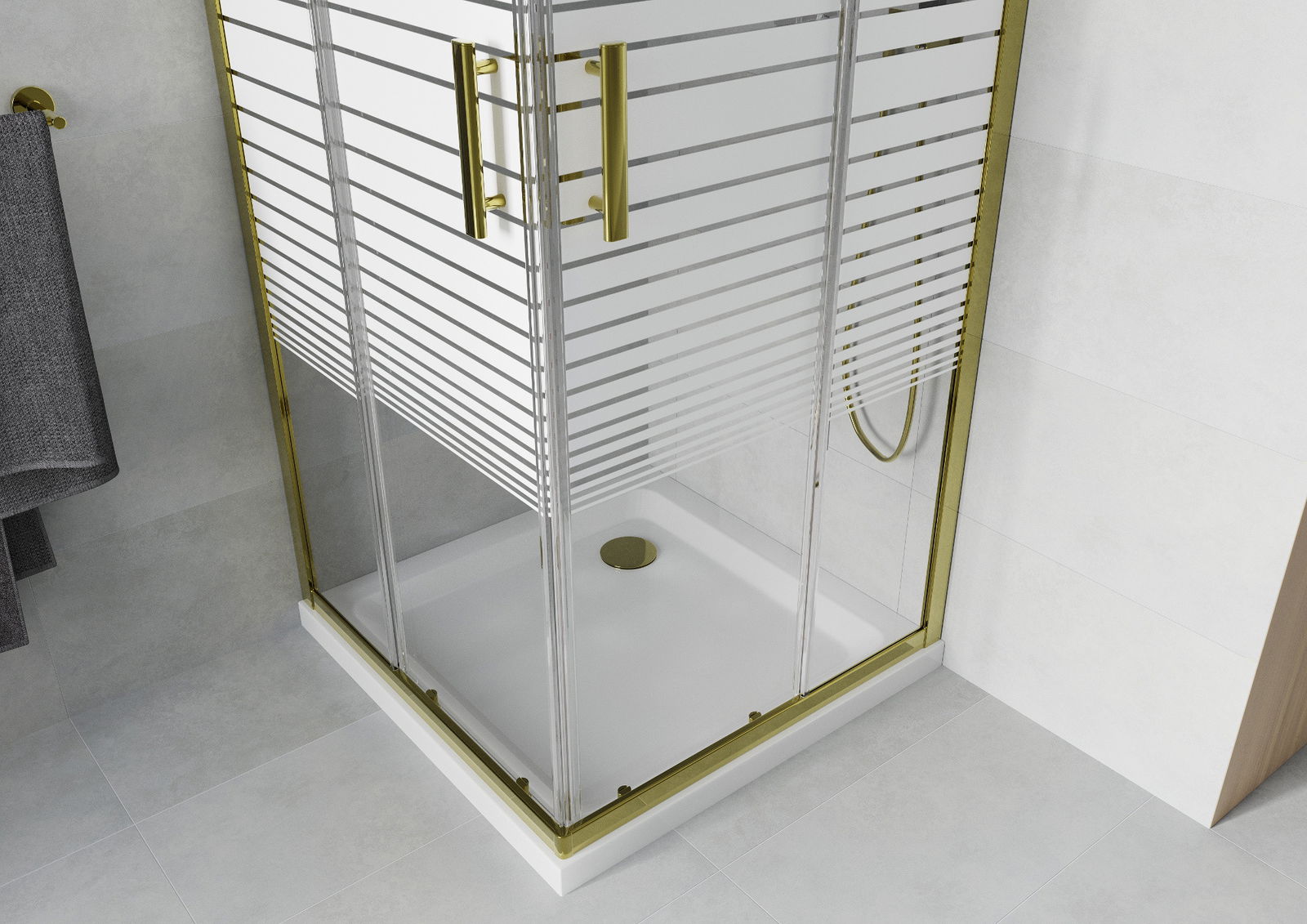 Mexen Rio cabină de duș pătrată 70 x 70 cm, dungi albe, auriu + cadă Flat, alb - 860-070-070-50-20-4010G
