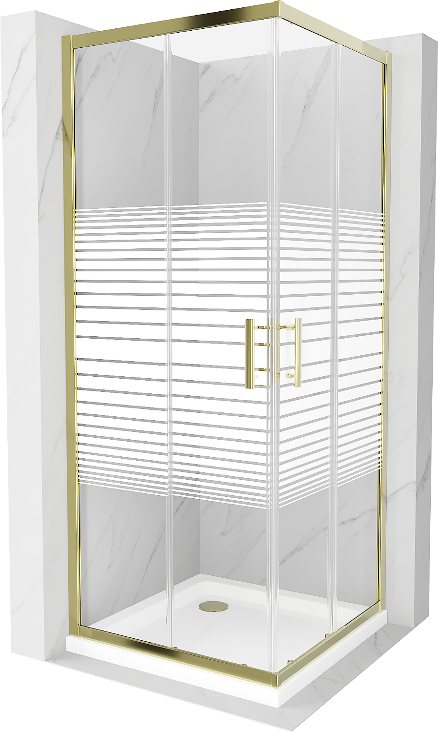 Cabină de duș pătrată Mexen Rio 80 x 80 cm, dungi albe, auriu + cădiță Flat, alb - 860-080-080-50-20-4010G