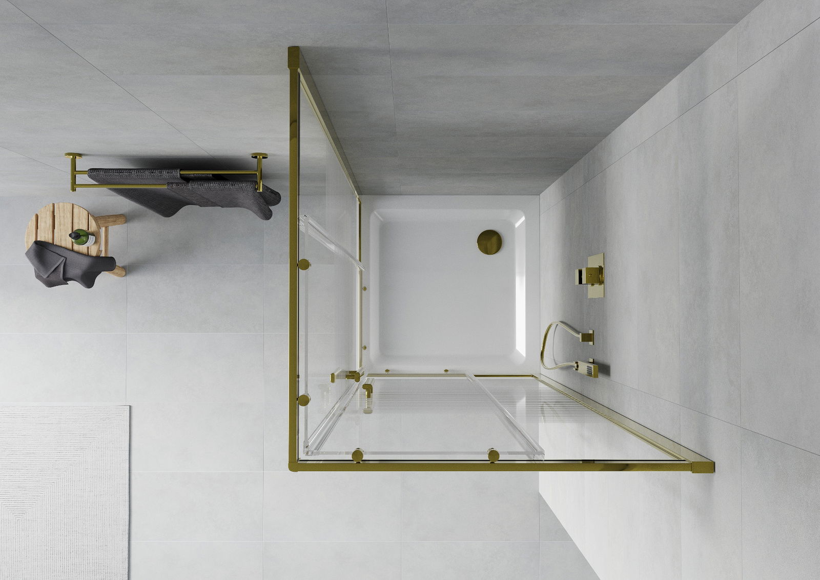 Mexen Rio cabină de duș pătrată 90 x 90 cm, benzi albe, auriu + cădiță Flat, alb - 860-090-090-50-20-4010G