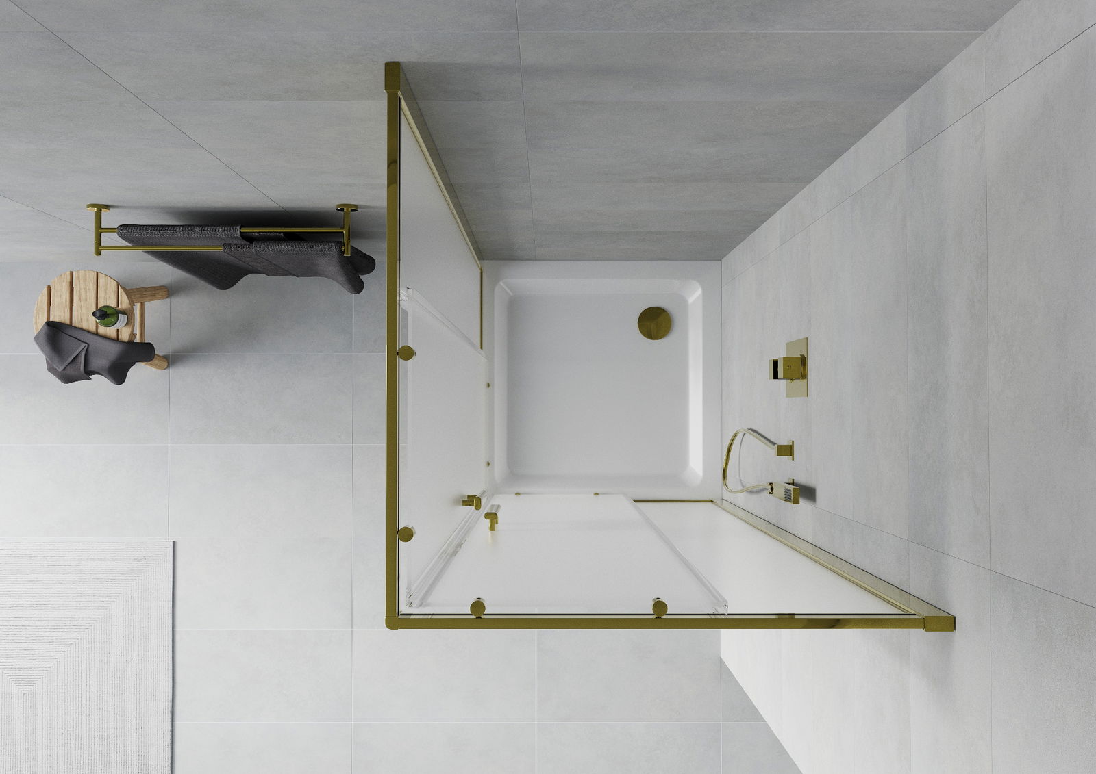 Mexen Rio cabină de duș pătrată 70 x 70 cm, înghețat, auriu + cadă plată, alb - 860-070-070-50-30-4010G