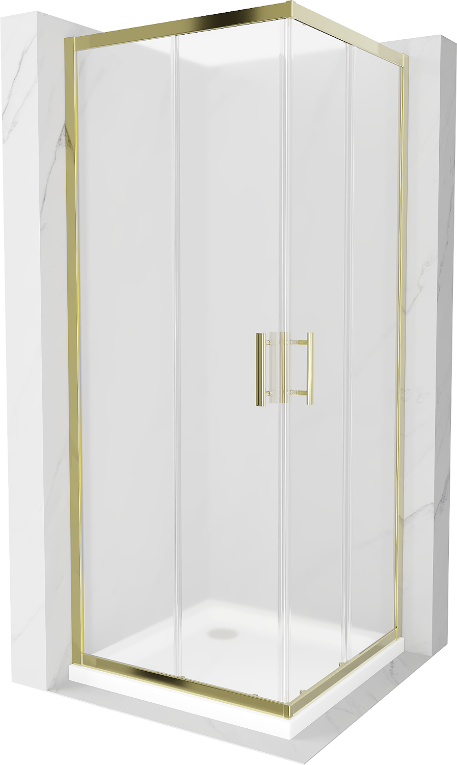 Mexen Rio cabină de duș pătrată 80 x 80 cm, geam mat, auriu + cadă Flat, alb - 860-080-080-50-30-4010G