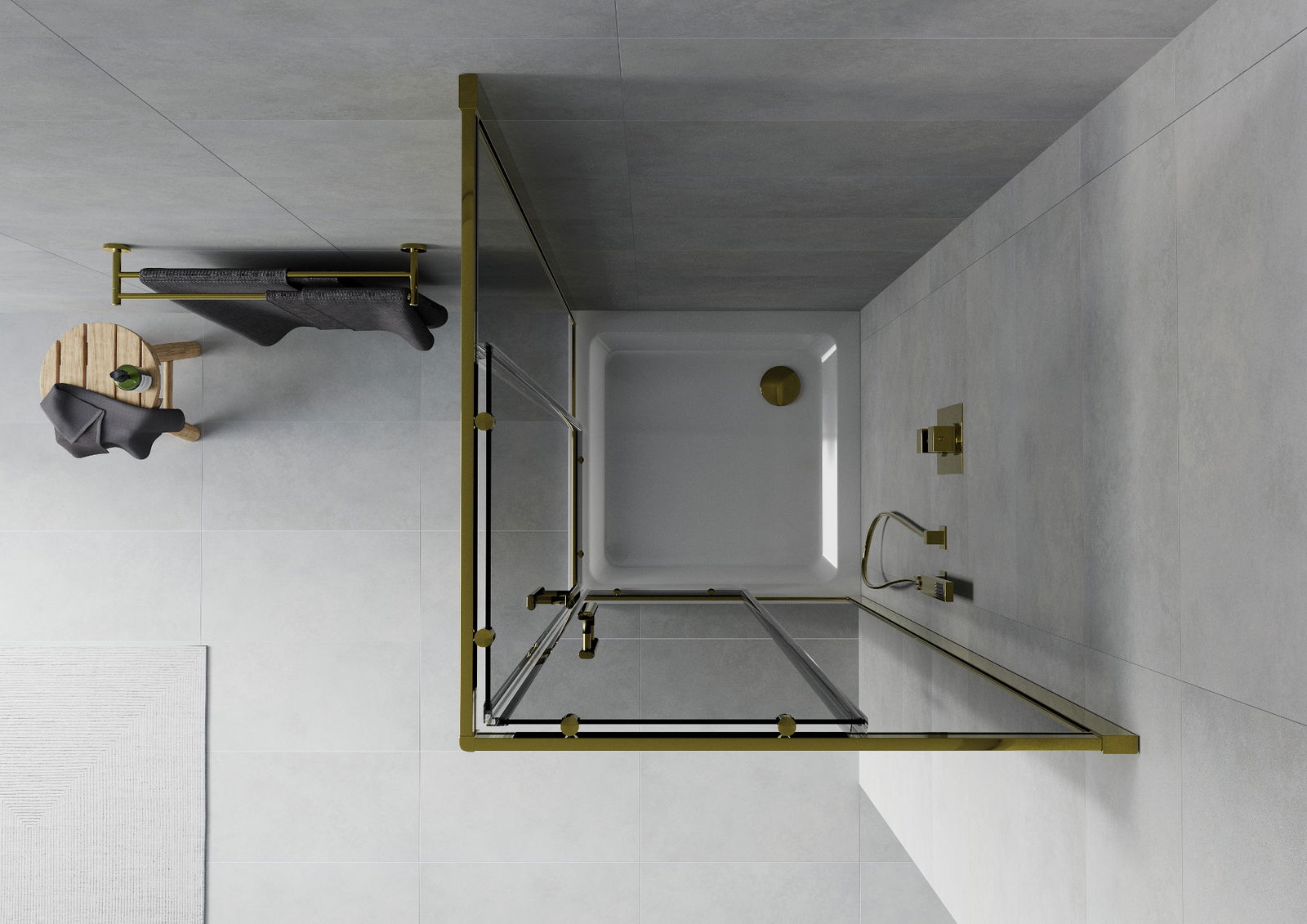 Mexen Rio cabină de duș pătrată 80 x 80 cm, grafit, auriu + cadă Flat, alb - 860-080-080-50-40-4010G