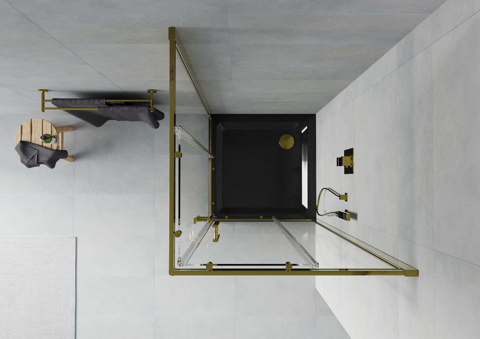 Cabină de duș pătrată Mexen Rio 80 x 80 cm, transparent, auriu + cadă de duș Flat, negru- 860-080-080-50-00-4070G