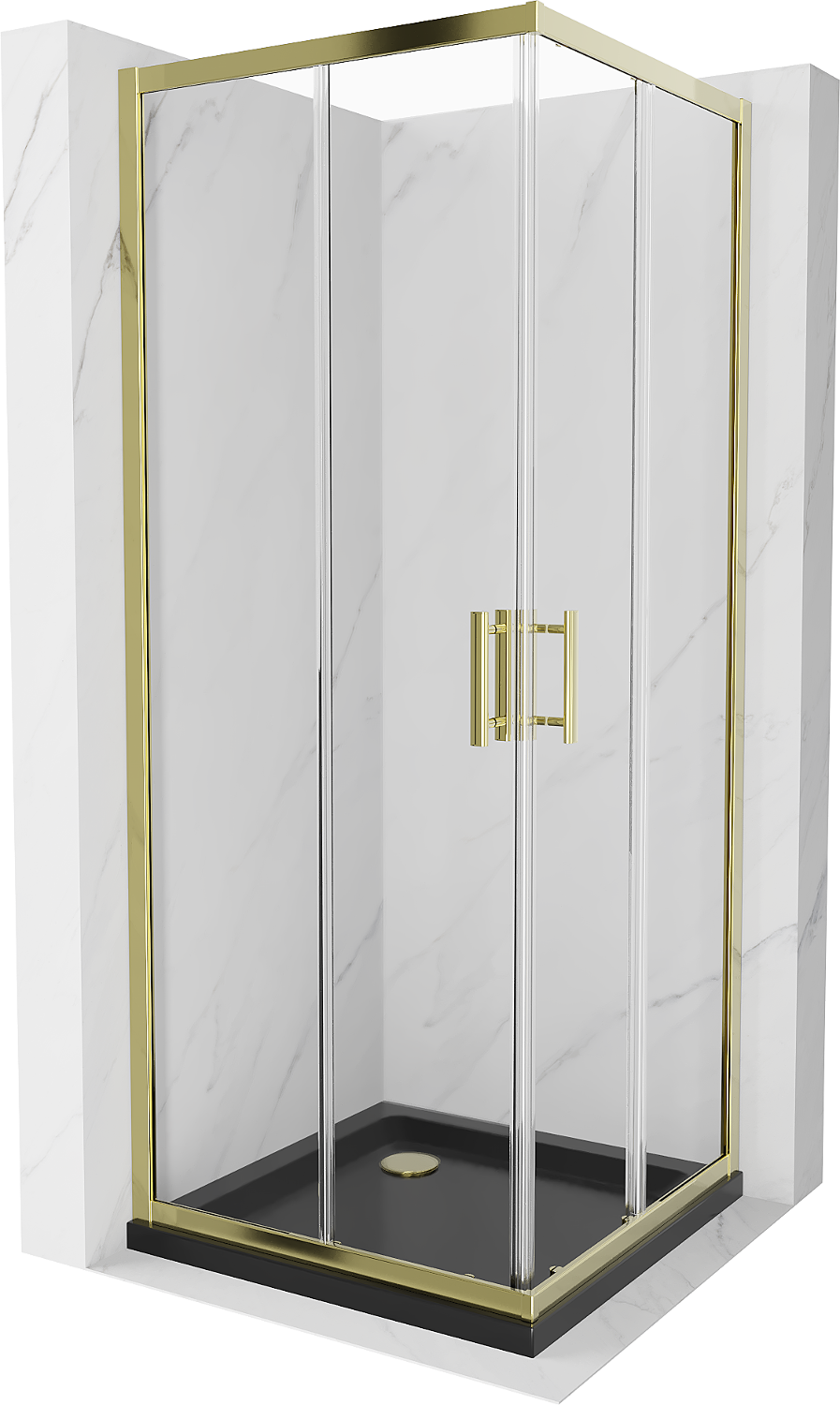 Mexen Rio cabină de duș pătrată 90 x 90 cm, transparentă, aurie + cadă de duș Flat, neagră- 860-090-090-50-00-4070G
