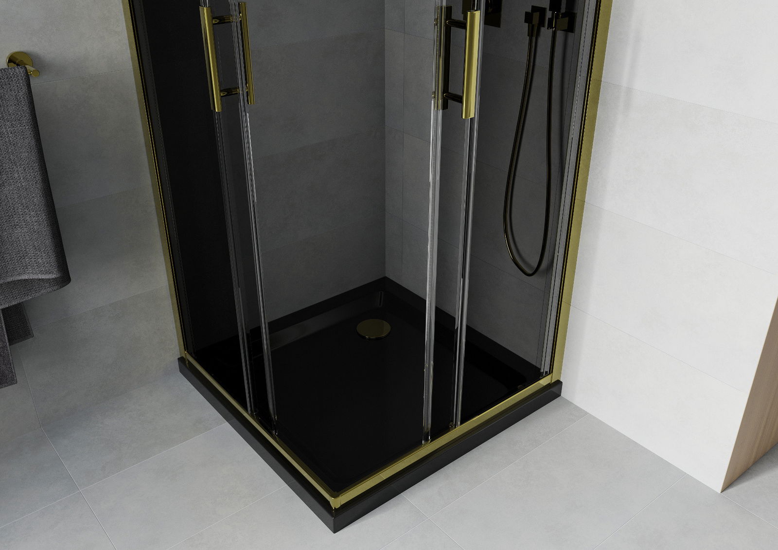 Cabină de duș pătrată Mexen Rio 80 x 80 cm, grafit, auriu + cadă de duș Flat, negru- 860-080-080-50-40-4070G