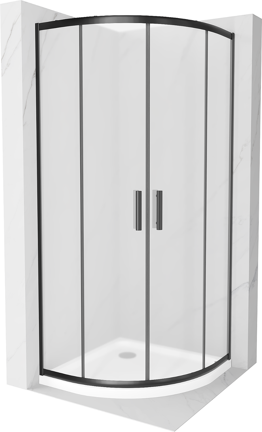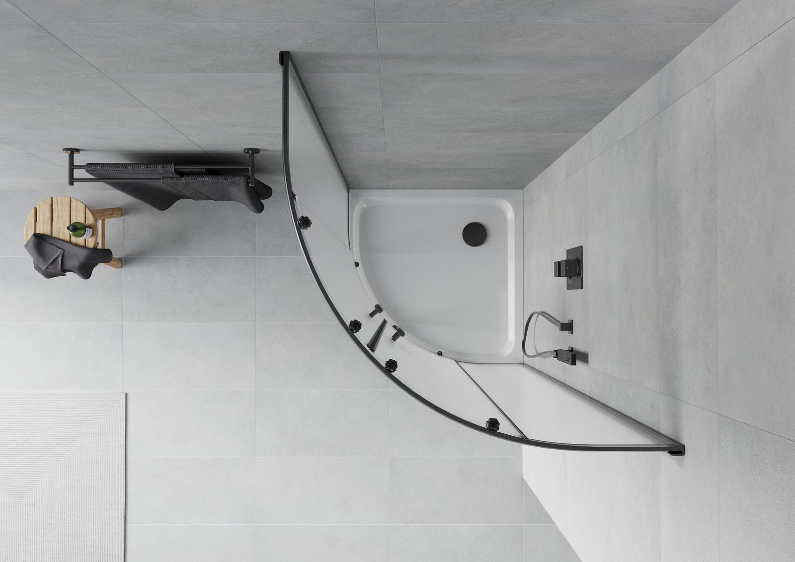 Mexen Rio cabina de duș semicirculară 90 x 90 cm, mat, negru + cadă Flat, alb - 863-090-090-70-30-4110B