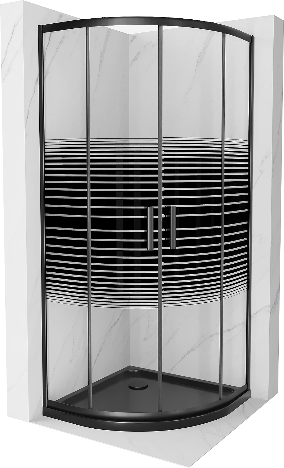 Mexen Rio cabină de duș semirotundă 90 x 90 cm, benzi negre, negru + cadă Flat, negru - 863-090-090-70-20-4170B