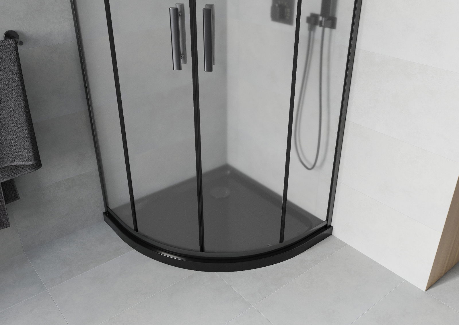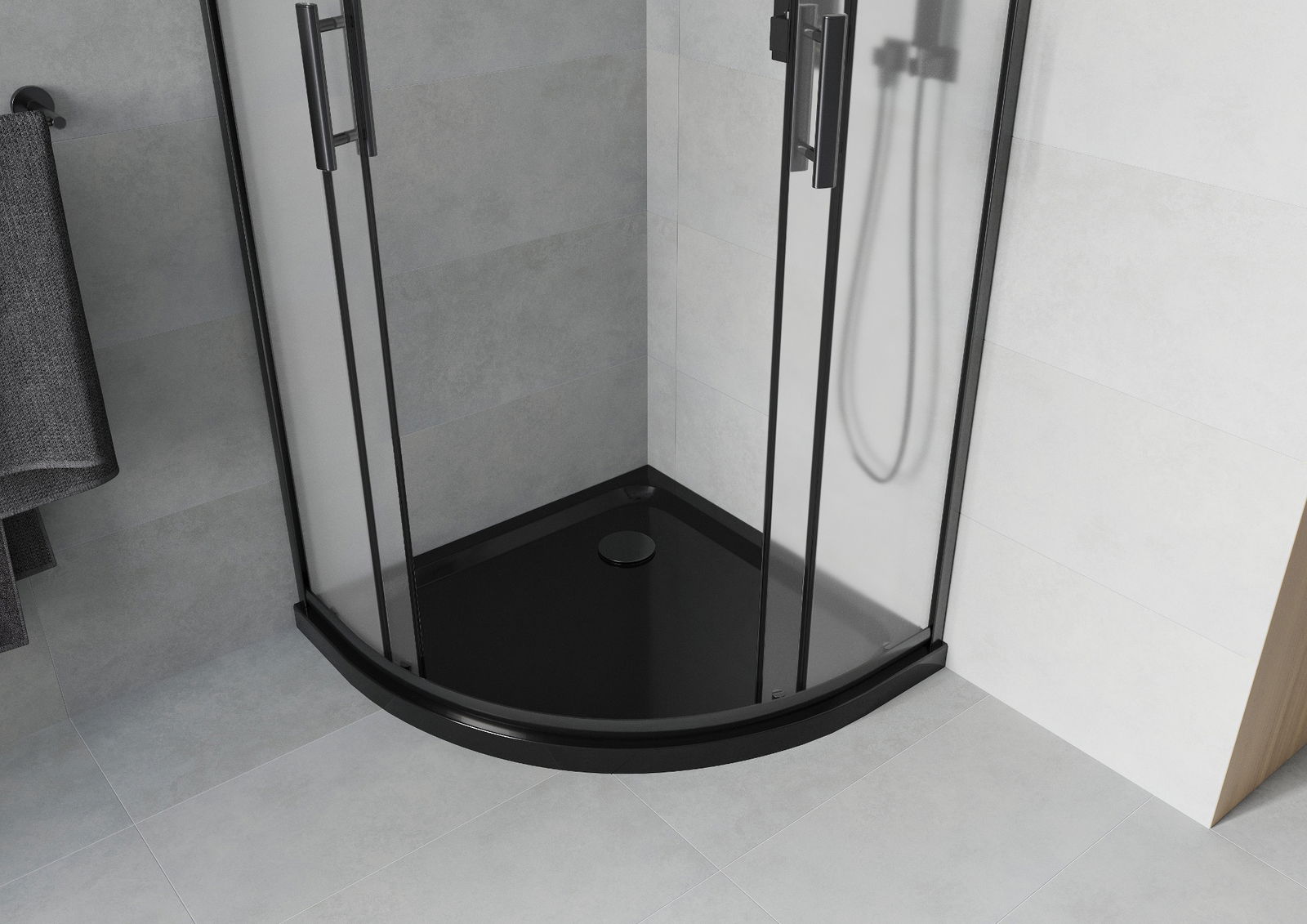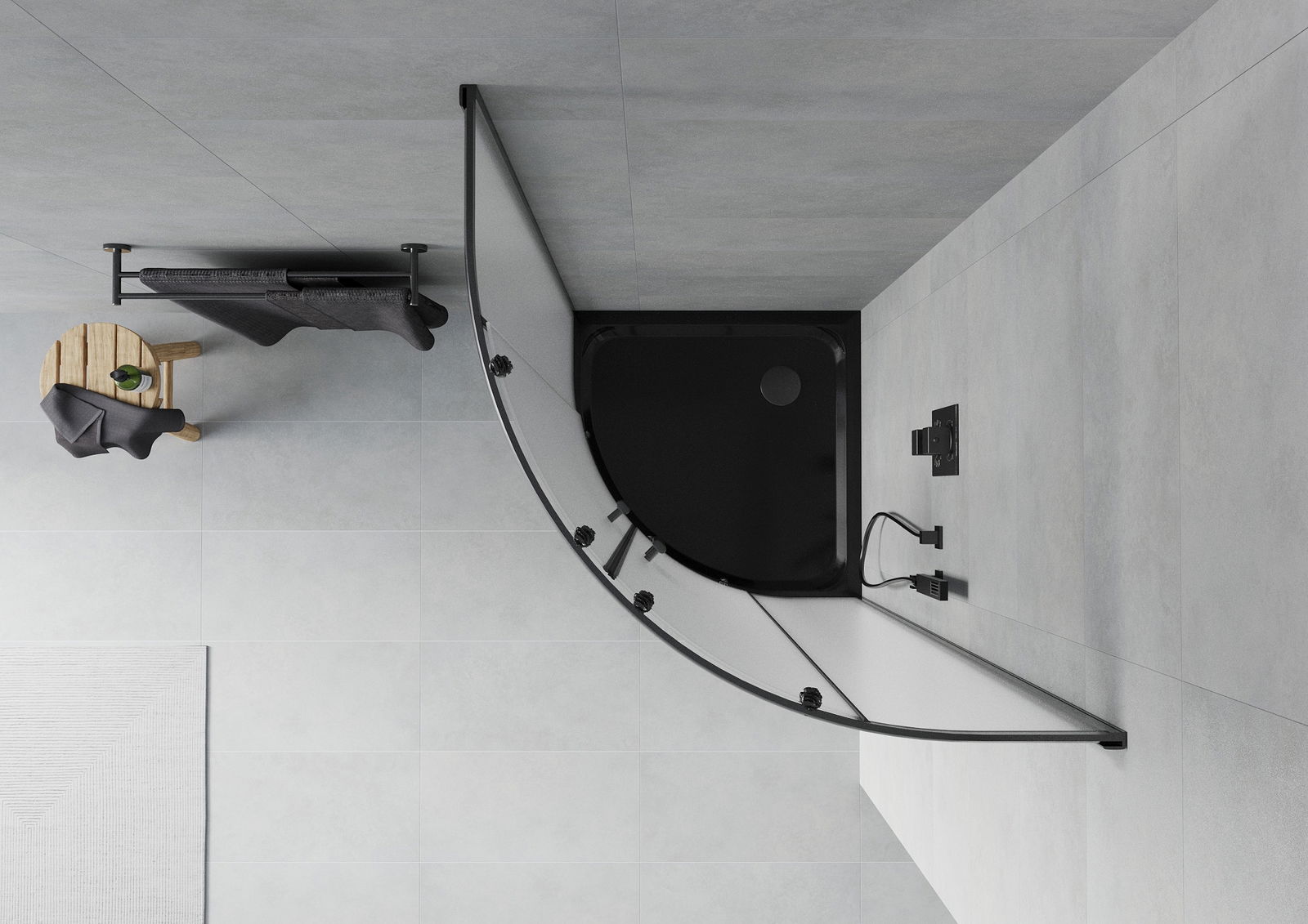Cabină de duș semicirculară Mexen Rio 80 x 80 cm, mat, negru + cădiță Flat, neagră - 863-080-080-70-30-4170B