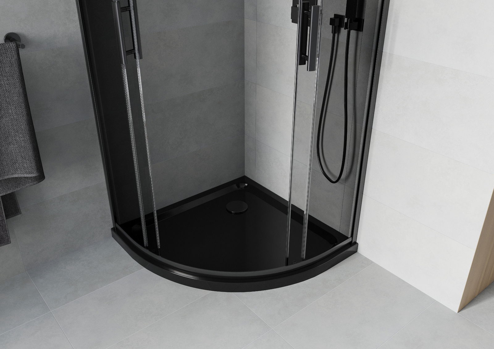 Mexen Rio cabină de duș semirotundă 80 x 80 cm, grafit, negru + cadă Flat, negru 863-080-080-70-40-4170B