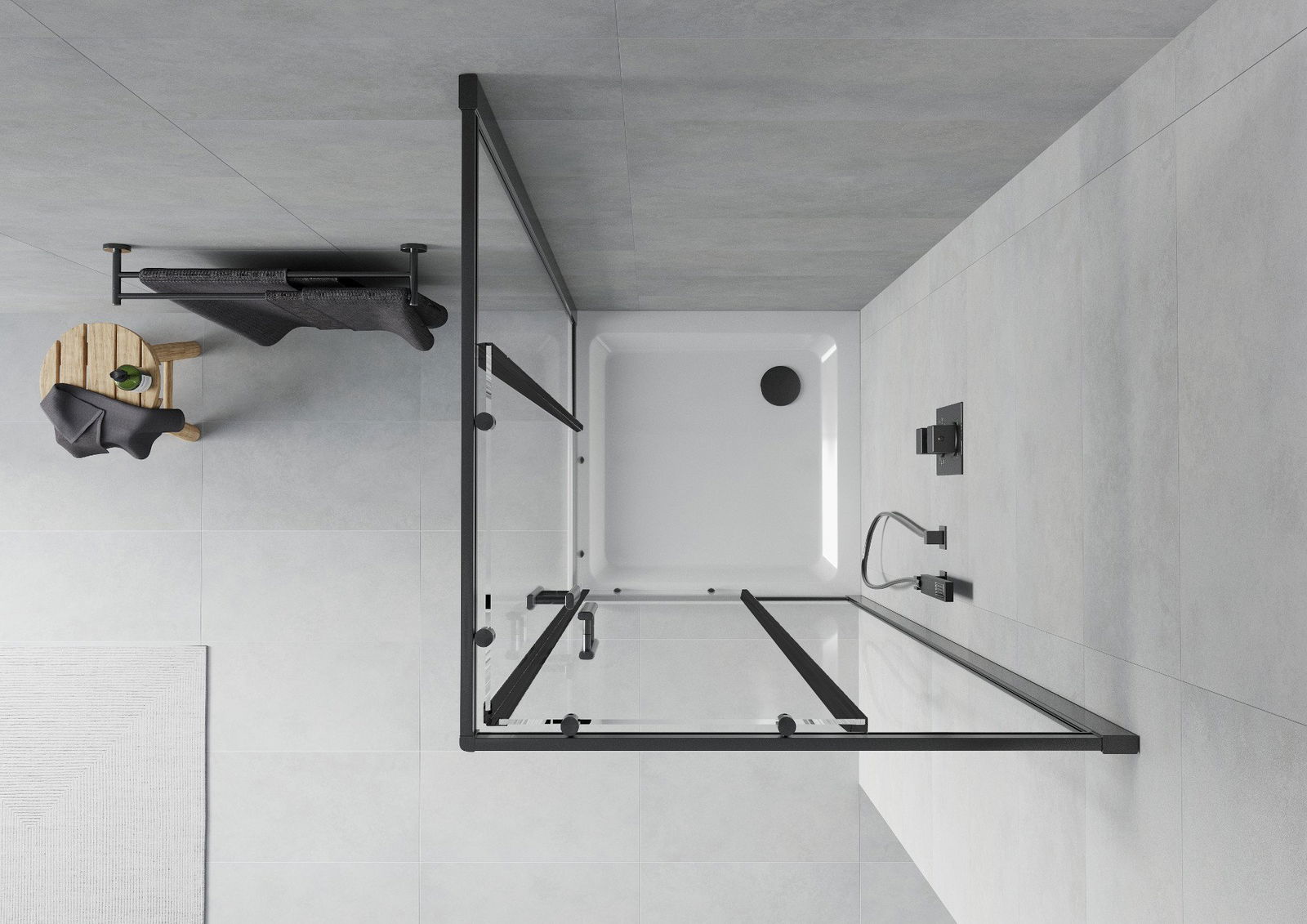 Mexen Rio cabină de duș pătrată 90 x 90 cm, transparentă, neagră - 860-090-090-70-00