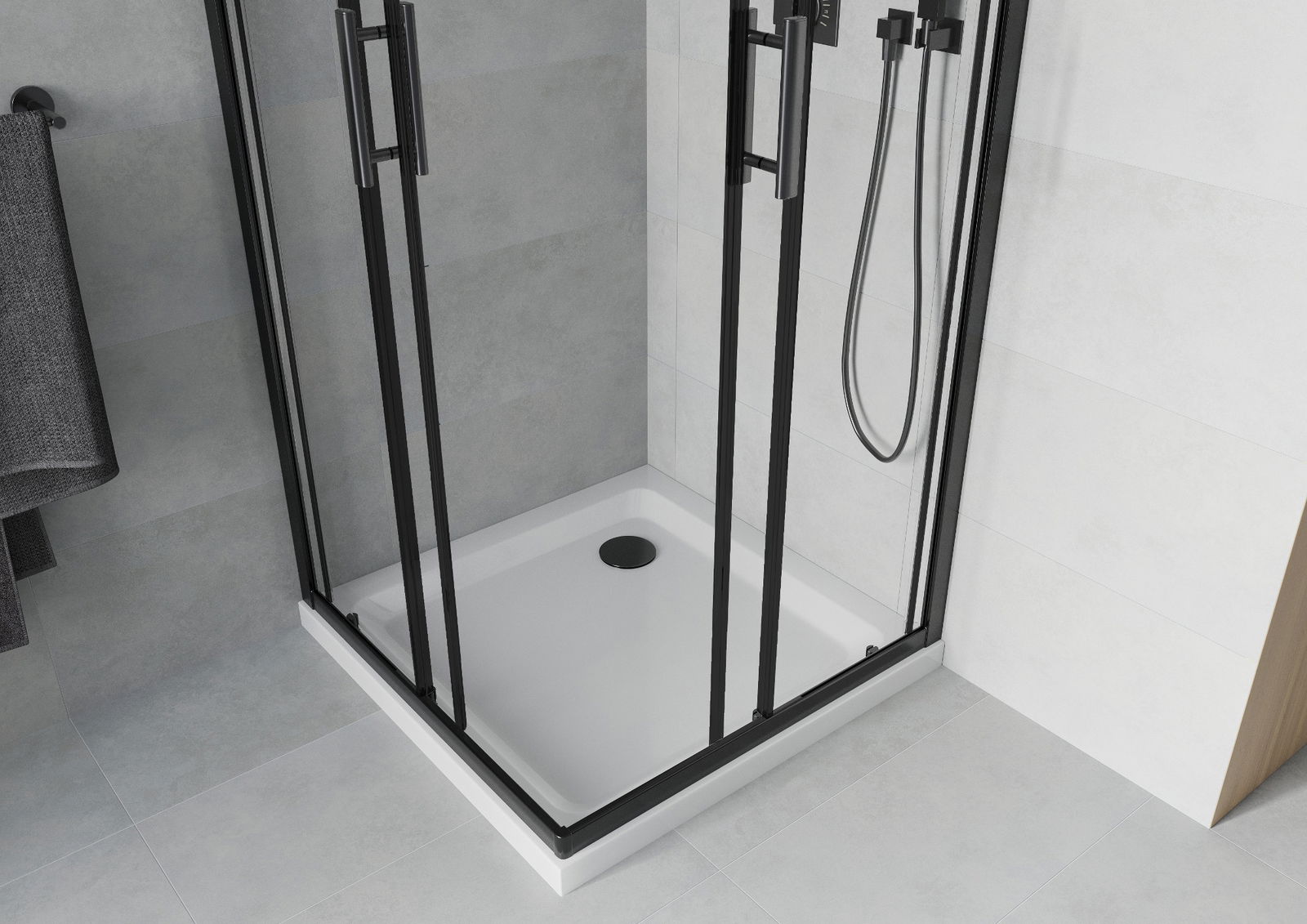 Mânerul la îndemână și confortabil era din metal durabil și rezistent. Forma la modă combinată cu un finisaj adaptat culorii profilurilor oferă întregului aspect modern și elegant, subliniind estetica fiecărei băi.
