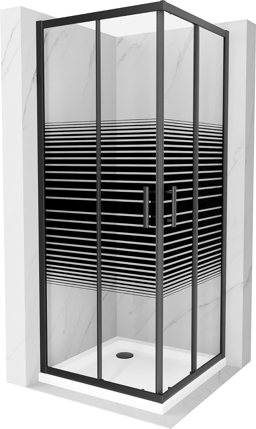 Mexen Rio cabină de duș pătrată 70 x 70 cm, dungi negre, negru + cadă joasă Flat, alb - 860-070-070-70-20-4010B