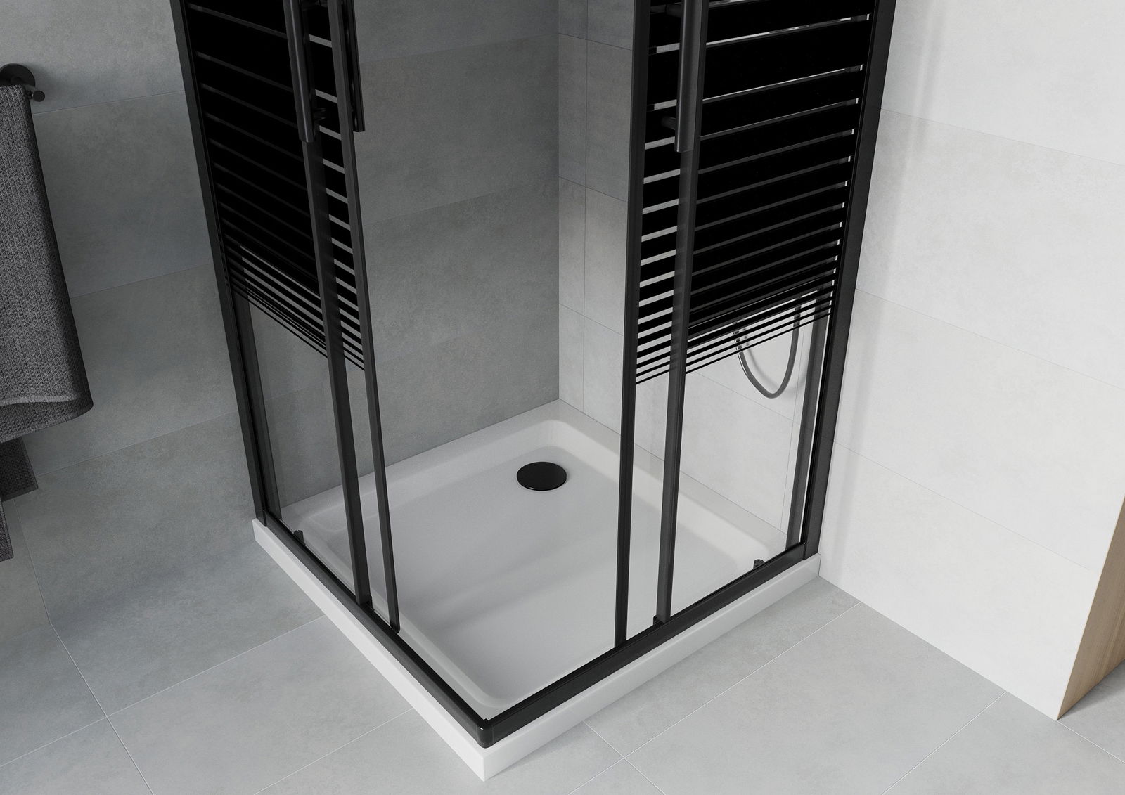Cabină de duș pătrată Mexen Rio 90 x 90 cm, benzi negre, neagră + cădiță Flat, alb - 860-090-090-70-20-4010B