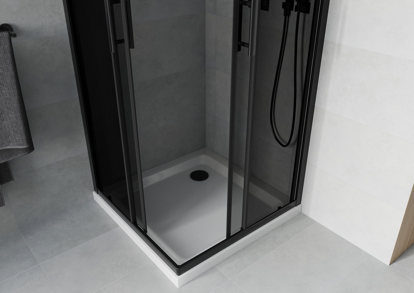 Cabină de duș pătrată Mexen Rio 90 x 90 cm, grafit, negru + cădiță Flat, albă - 860-090-090-70-40-4010B