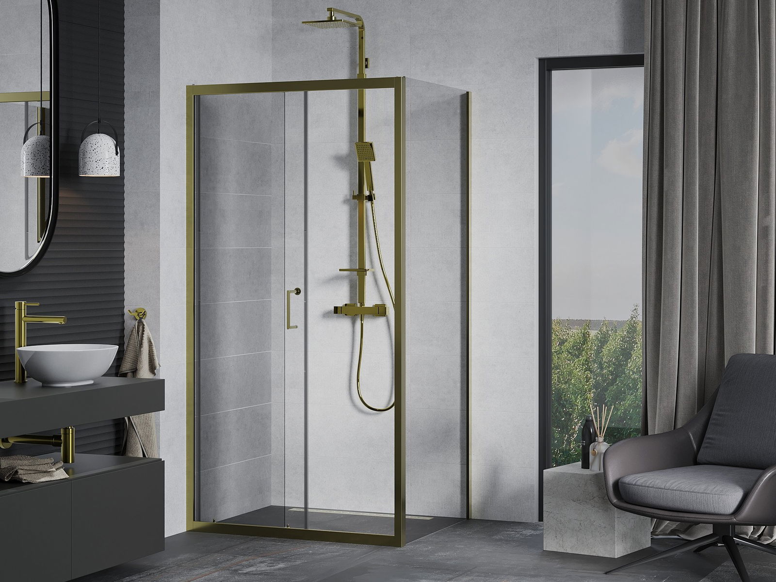 Mânerul la îndemână și confortabil era din metal durabil și rezistent. Forma la modă combinată cu un finisaj adaptat culorii profilurilor oferă întregului aspect modern și elegant, subliniind estetica fiecărei băi.